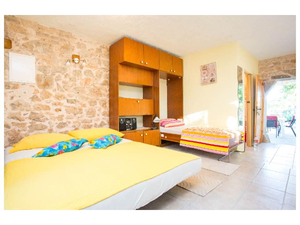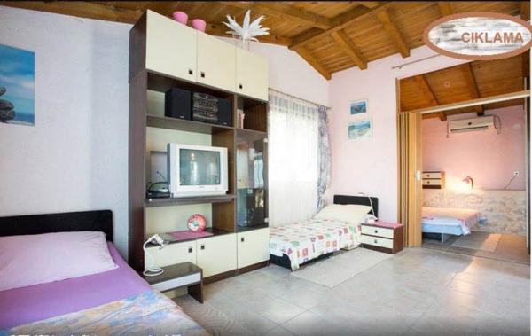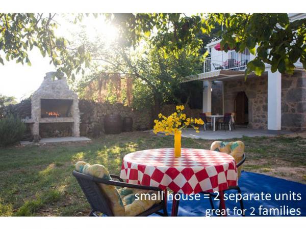 Accommodation for 7 people - GREAT FOR 2 FAMILIES - House ŽOFICA consists of 2 apartments: - ground floor: studio apartment MIMOZA, 3 people, approx. 30 m2, living room, shower room, terrace 22m2, stone walls; - 1st floor: apartment CIKLAMA, 4 people, 40 m2, living room, small bedroom, shower room, balcony. Island of Krk, Skrpčići - small, quiet, hospitable village. Rural setting. About 4 - 7 minutes by car to the sea. Accommodation - Mediterranean atmosphere. Lush greenery and rocky areas. Stone grill, large yard, parking. Shop, children's playground, small sports field, church, restaurant 40m. Well connected to the cities of culture and entertainment Malinska and the Town of Krk. Ferry port Valbiska 2km (trips to the island of Cres and the island of Rab), Rijeka airport 25km. Taxes included. Reservation is made with an advance payment, the rest is paid upon arrival. Check-in 14-15. Check-out 07-10. EnkaraPopenkara@gmail. com 385 976062644