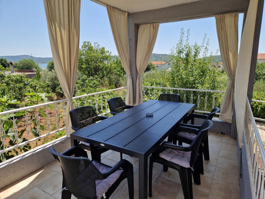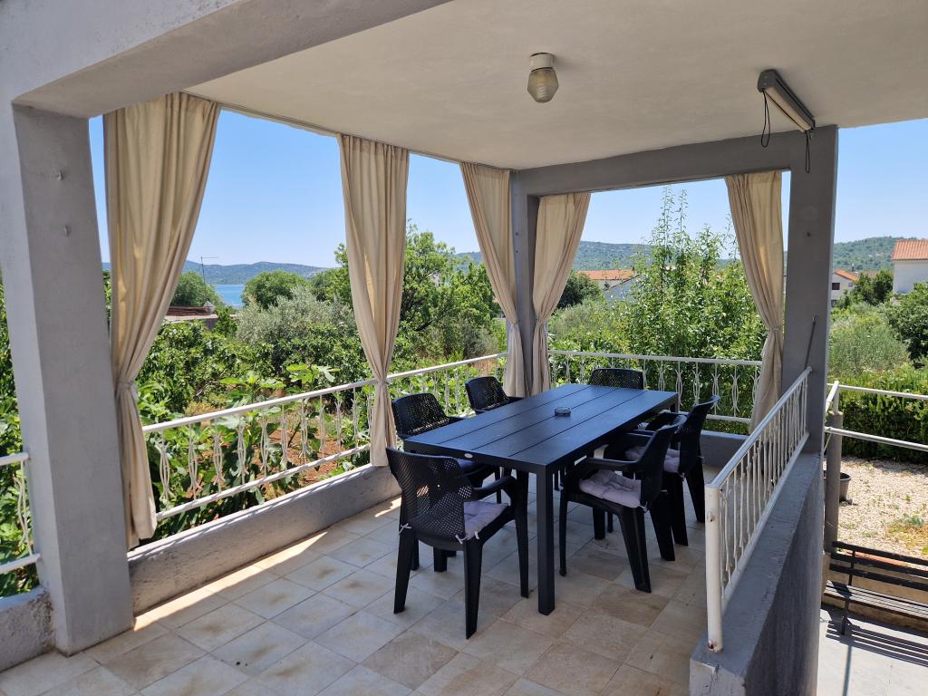 Very spacious, comfortable apartment with a large terrace, balcony and sea view. Located in a quiet, green oasis, 100m from the beach and the center of town. Suitable for a quiet family holiday. It has its own free parking for 2 to 3 cars.