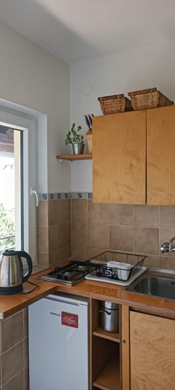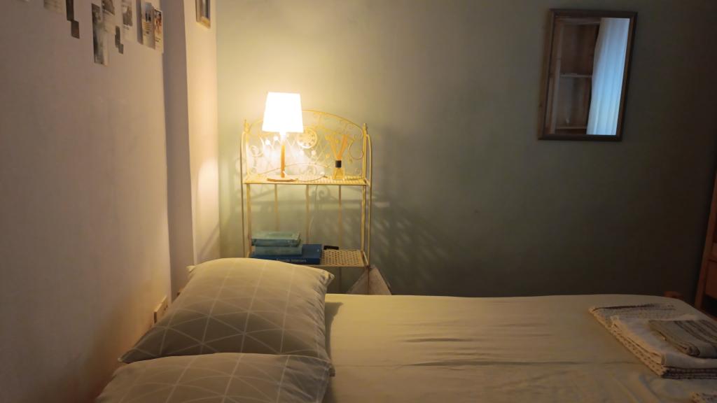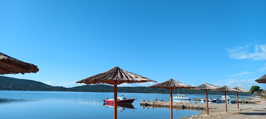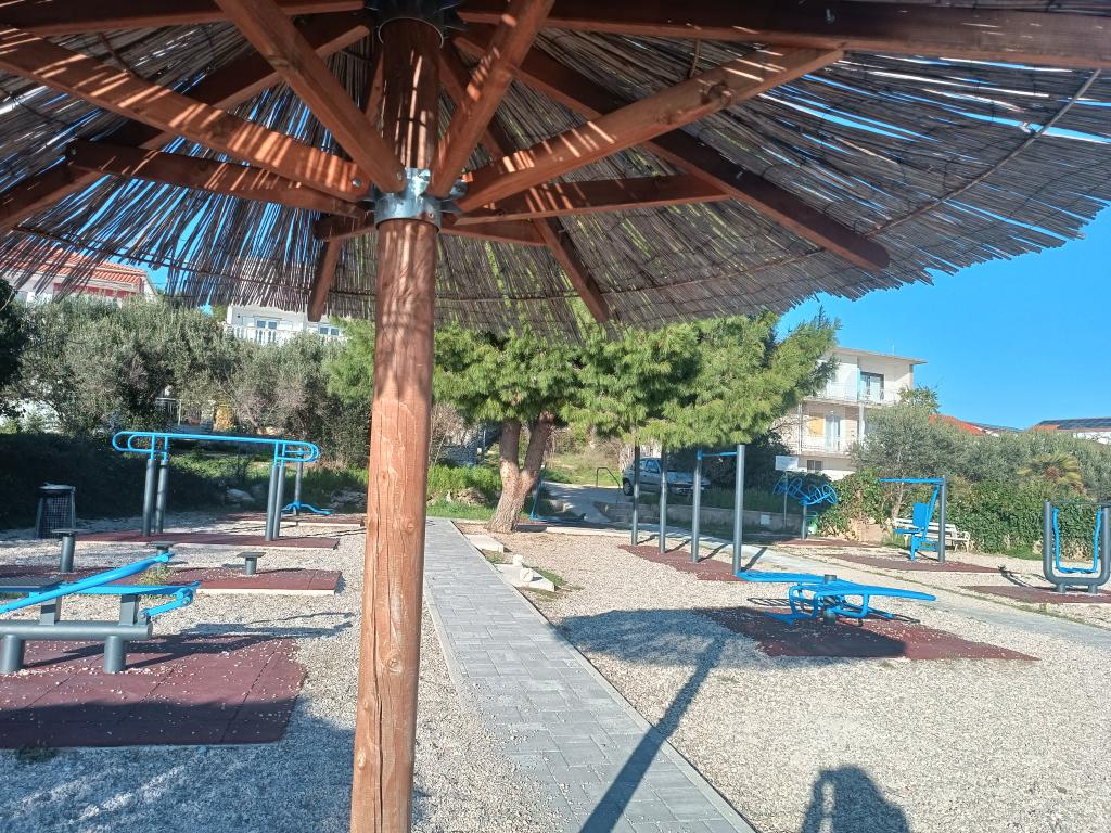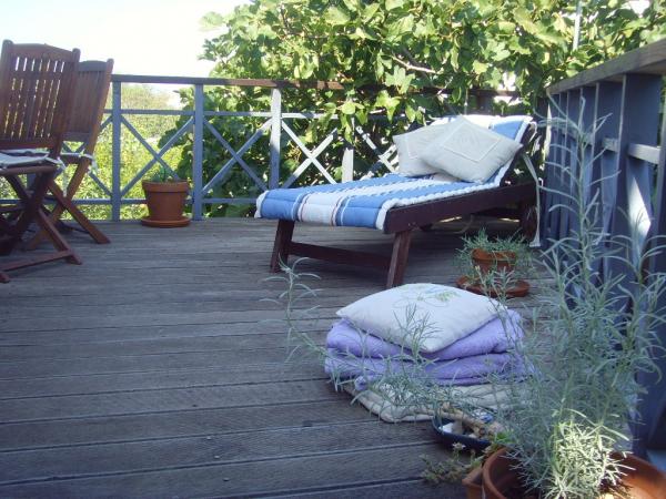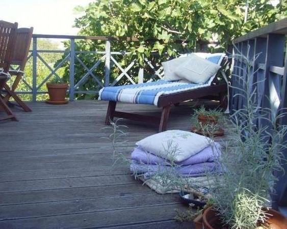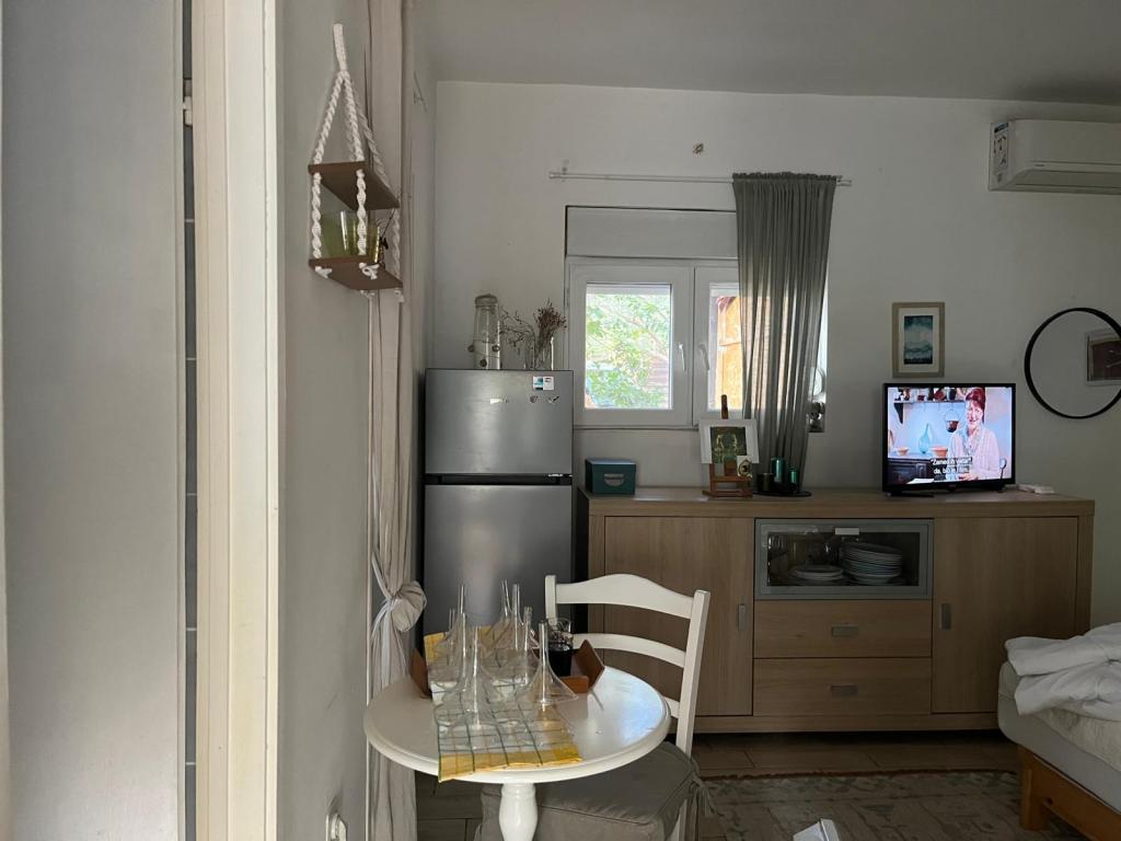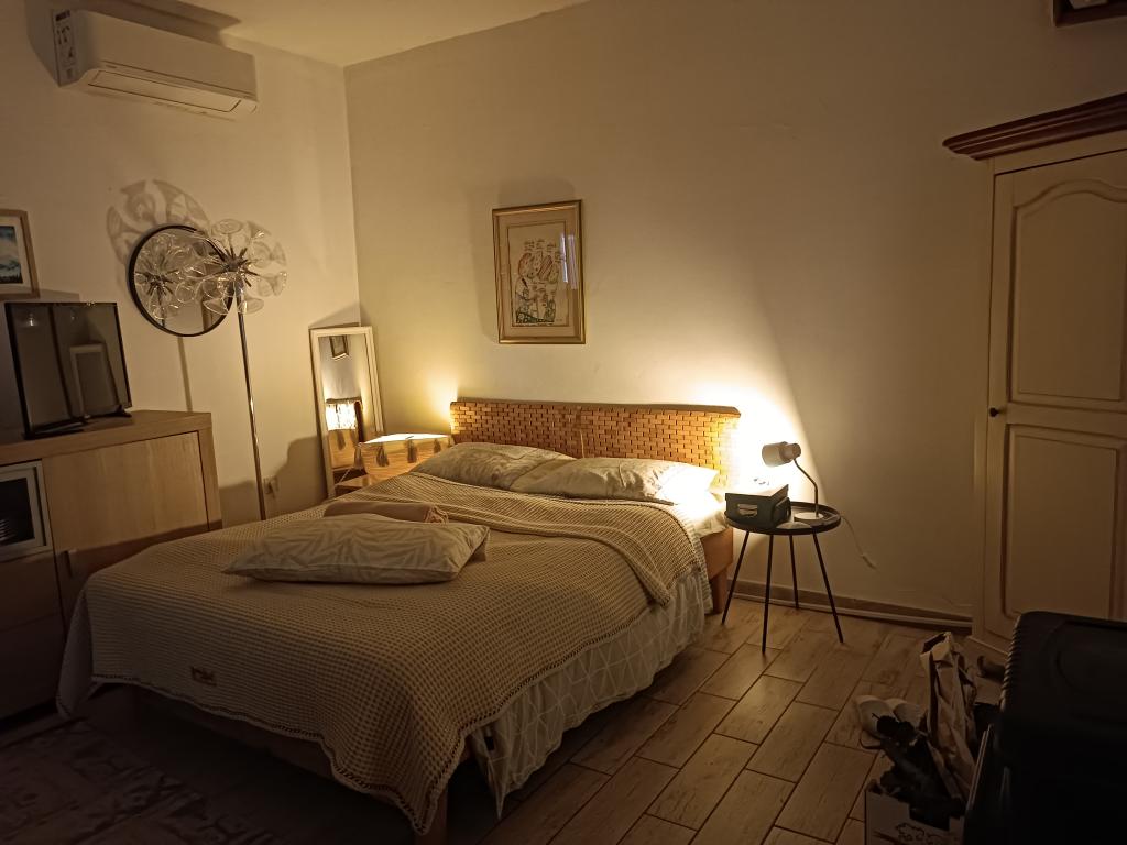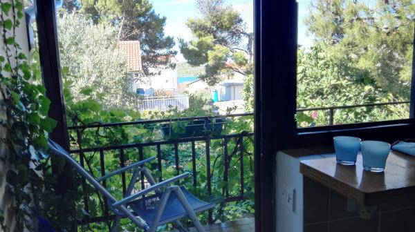 The Log Inn apartment is located on the first floor of a house with only two apartments, in a quiet alley for families. The garden of the house is shady with olive, fig and pine trees, with a parking space in the yard. The town center with shops, bakeries, pastry shops, cafes and restaurants is a 10-minute walk away, and the first pebble beach is only a 5-10-minute walk away. The Log Inn is pleasant to stay in whatever the weather, spacious and with a separate room with a living room with toys and picture books. It is well equipped (dishes, kettle, coffee machine, max-tv, wlan, air conditioning) and in the living room in the spring evenings it is relaxing by the fire in the wood stove. The terrace with garden furniture is pleasant, and guests are happy to have breakfast on it, sunbathe or enjoy the evening. The studio is smaller and with a smaller kitchenette, but because of the garden it is pleasant even in the summer heat. It has equipment for babies: travel cot, nursery, toys, mat, etc. Both apartments have cooling and heating. In the off-season, they are rented with discounts and on a monthly basis