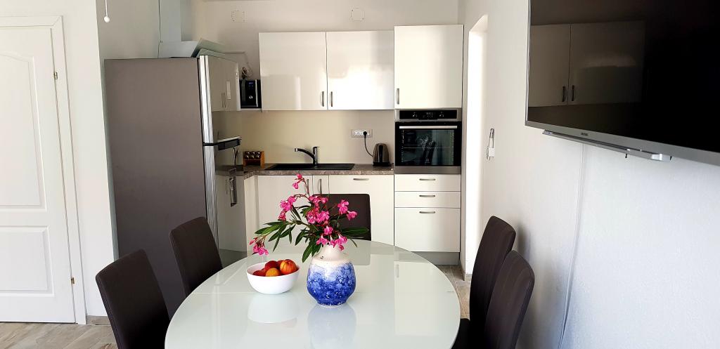 Well-equipped apartment. Large fridge, dishwasher, oven and microwave + everything you need in the kitchen. Comfortable beds, clean and tidy. The hosts helpful and very nice. Great contact! Peaceful surroundings and delicious figs at your fingertips. Welcome surprise for guests. An ideal starting point for trips to Zadar, Trogir and Vodice or for trips to Kornati, Krka and others. I recommend the beautiful island of Murter with the wonderful beach of Riva Podvrške, 25 minutes away by car. I highly recommend it!