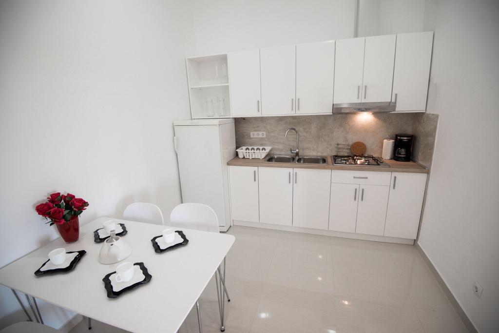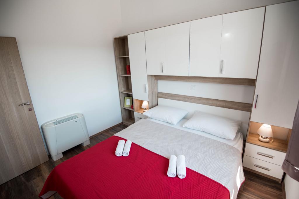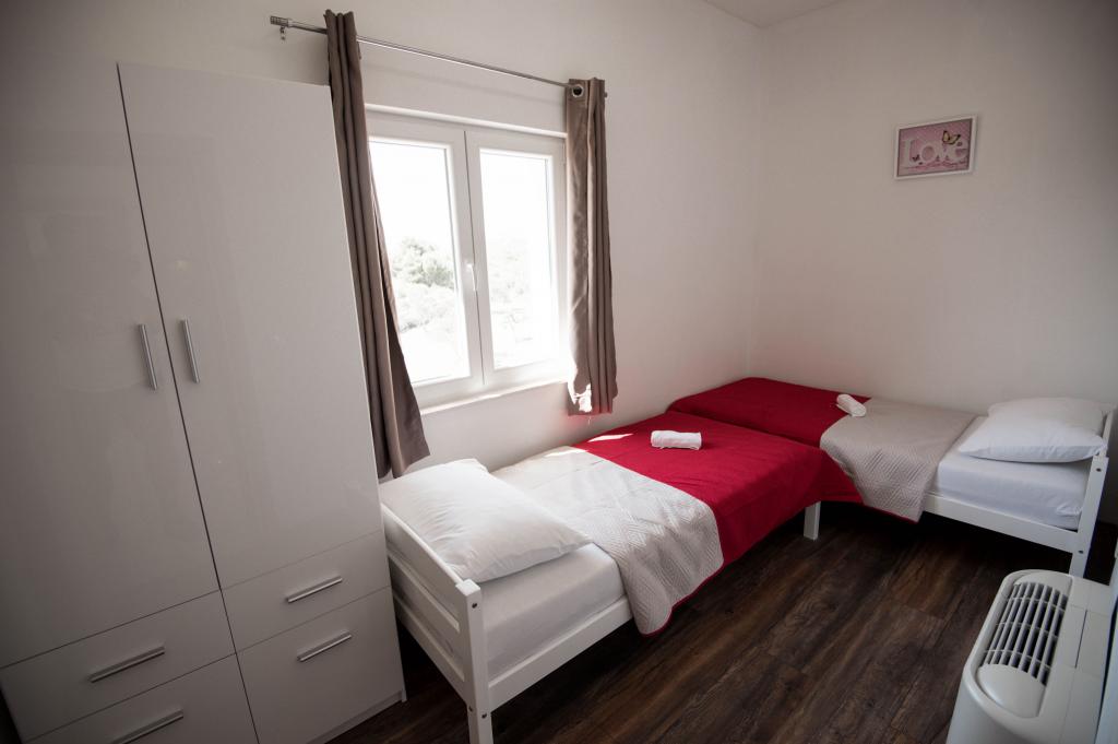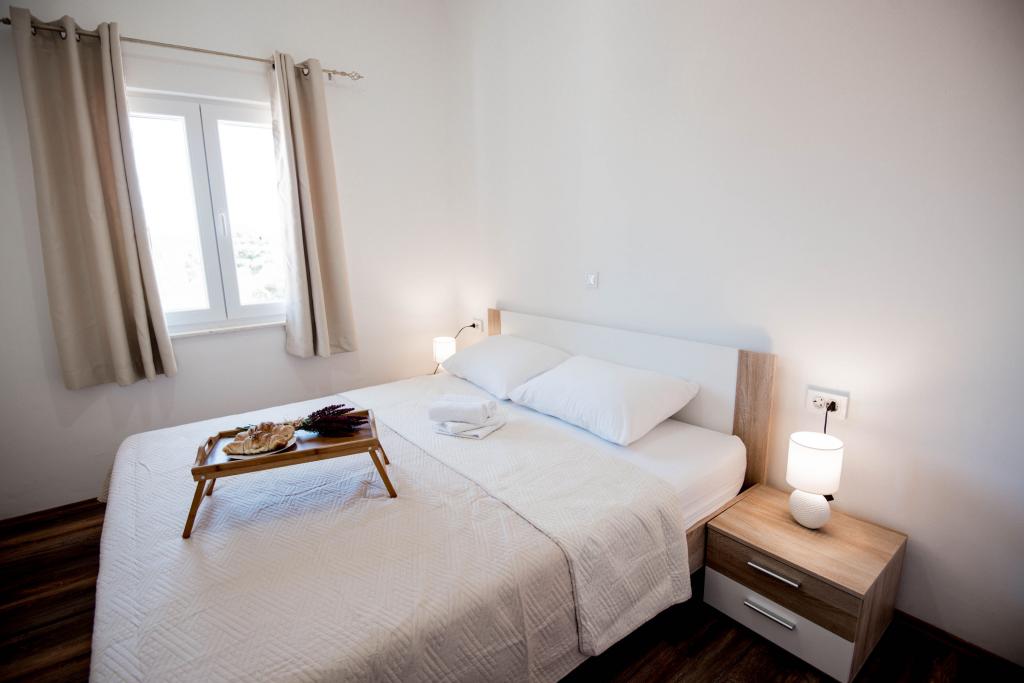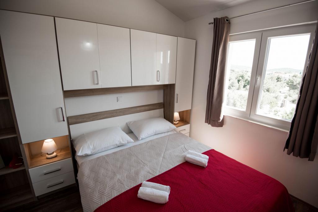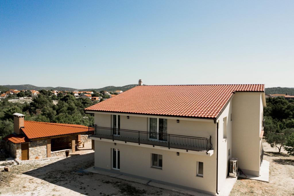 Newly decorated apartments in a house in a quiet part of Pirovac. The house is located in a secluded area, away from other houses so that guests have privacy. The house is a 3 minute drive to the center and to the beach. 3 star apartments. Within the building there is an outdoor kitchen with a large grill and toilet. In the yard there is a covered parking lot. Possibility to rent the whole house at a better price.