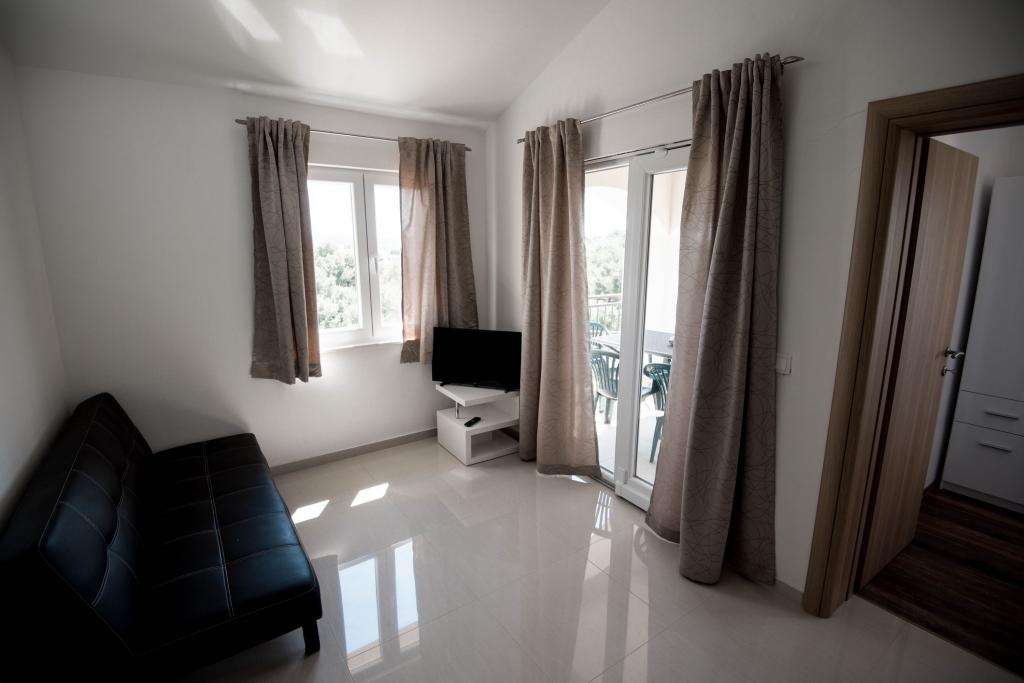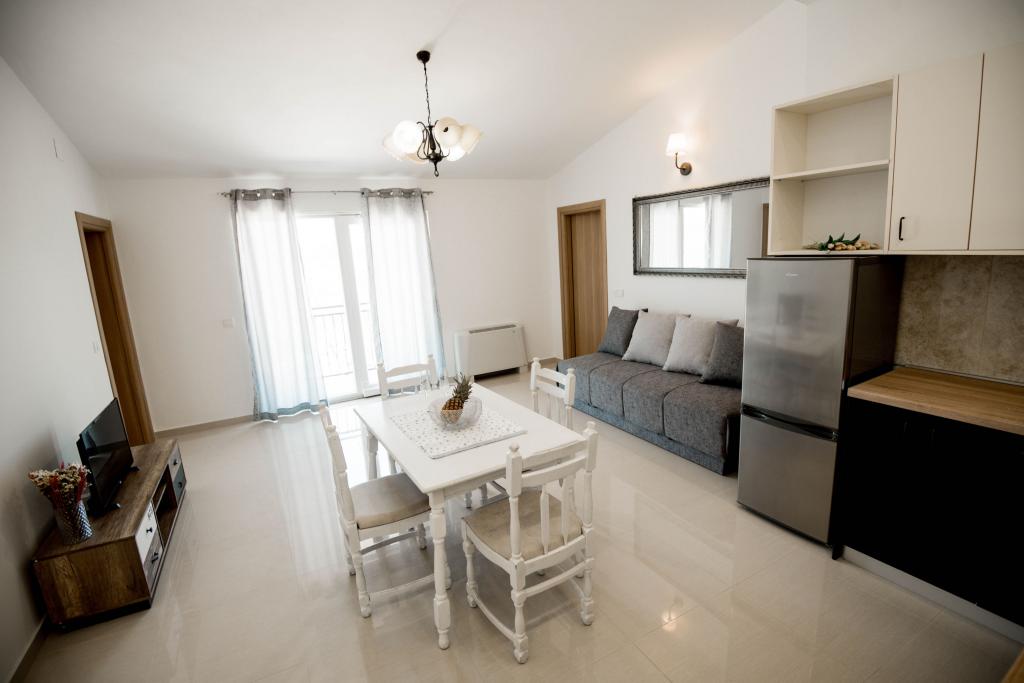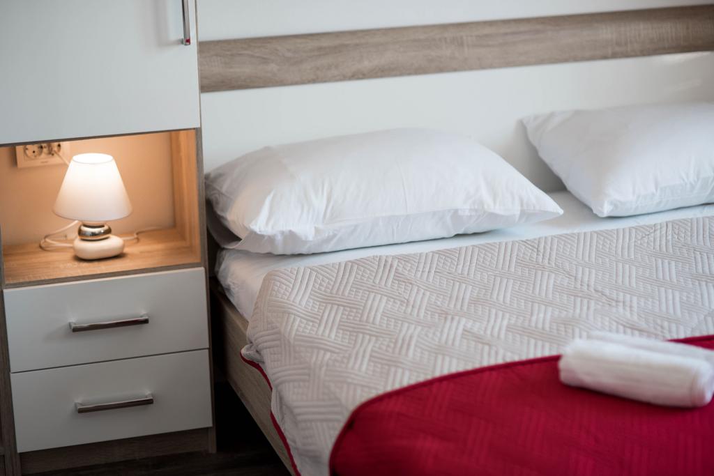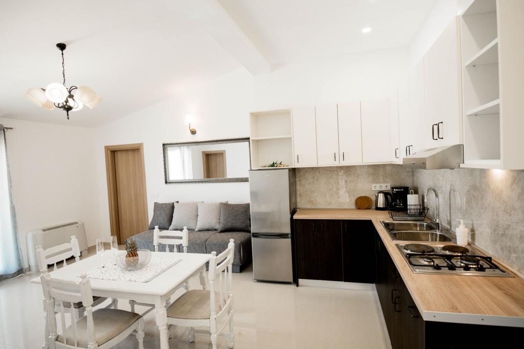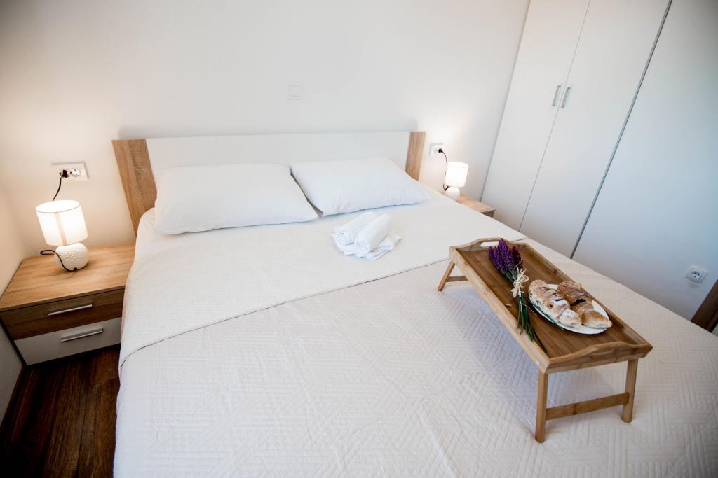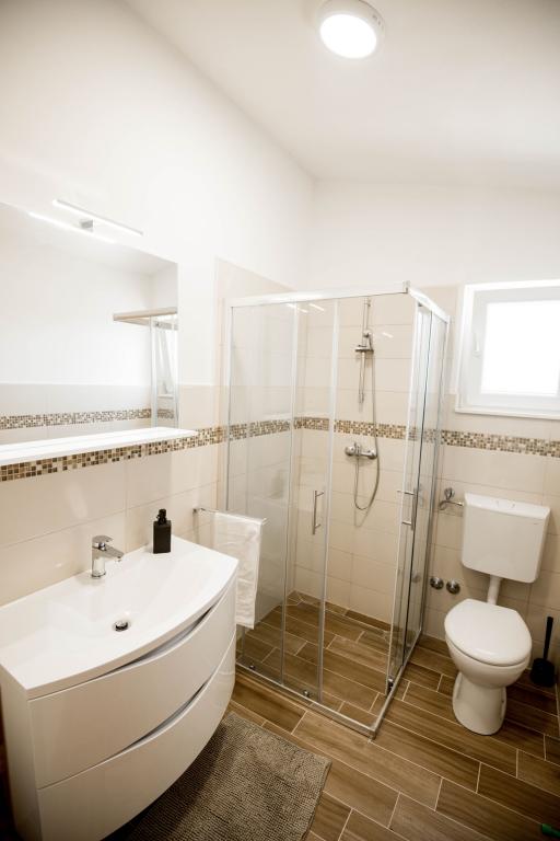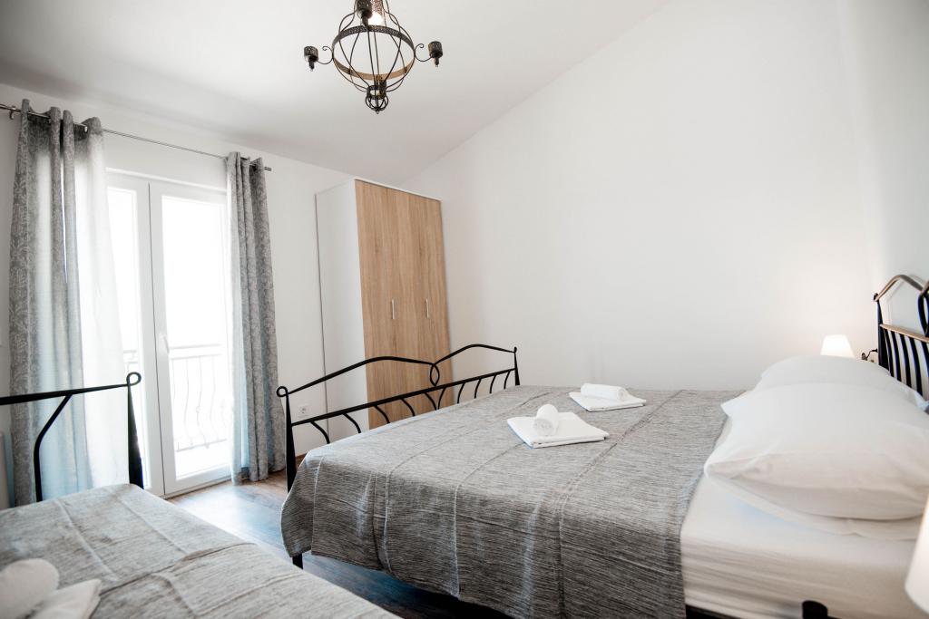 Newly decorated apartments in a house in a quiet part of Pirovac. The house is located in a secluded area, away from other houses so that guests have privacy. The house is a 3 minute drive to the center and to the beach. 3 star apartments. Within the building there is an outdoor kitchen with a large grill and toilet. In the yard there is a covered parking lot. Possibility to rent the whole house at a better price.