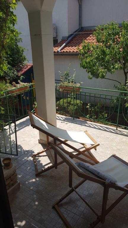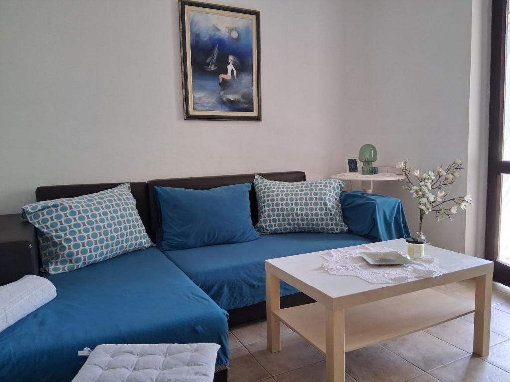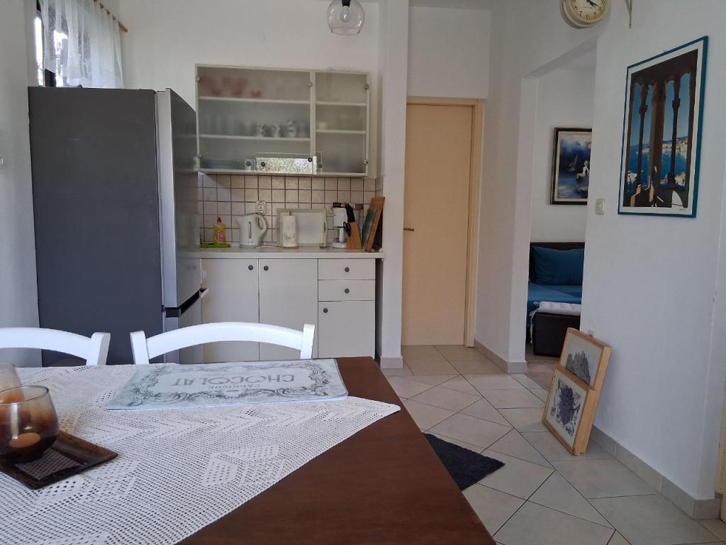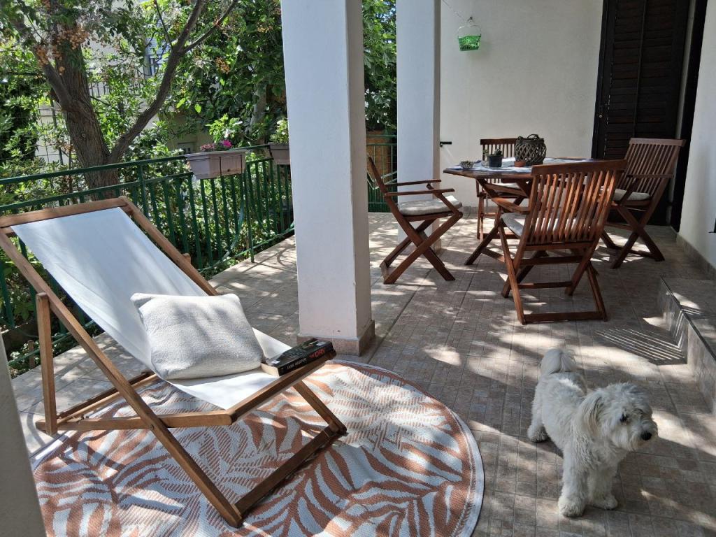 We were first delighted by the parking in front of the house, in the shade. The apartment is spacious, well equipped with all essential appliances (kettle, toaster, coffee machine, cutlery, and even a washing machine) and the apartment was extremely clean. A large refrigerator, with as many as three freezer drawers, essential for us for ice creams and cooling drinks. Next to the large terrace there is a tree that provides shade all day long, and blackbirds come to sing on it and you don't hear annoying crickets at all. There is enough space to hang all our towels. The beach is about a 5-minute walk away, and colorful oleanders bloomed along the way. so it's a real pleasure to watch them. The sea is clean, the beach is not overcrowded, there are several cafes along the coast. It's about a 10-minute walk to the center, it's full of restaurants, plenty of ice cream cones. The owner is extremely kind, unobtrusive and we hope to meet again in the off-season.