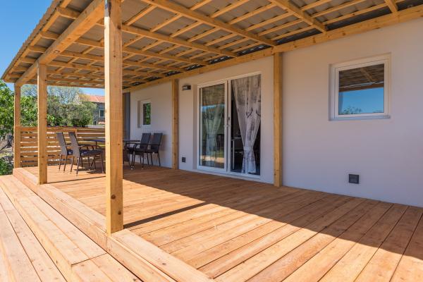 Authentic Camping Dalmatia is a camp located in the heart of Dalmatia in Pirovac. The camp is ideal for people who want a peaceful vacation without stress, and a pleasant Mediterranean climate is something that will surely match you with the smell of Mediterranean plants and pines nearby. In the camp there is a mobile home, three campers camping sites, a swimming pool and an outdoor sanitary facility. The mobile home is surrounded by olive trees and will surely make your vacation beautiful and comfortable. The mobile home has two bedrooms (one with a double bed, the other with two single beds), and two bathrooms, living room and kitchen. The house is air-conditioned. SAT-TV and internet are available for guests. The house also has a covered wooden terrace. Refresh in the hot summer days in the pool that is located in the center of the camp. The youngest can play fun and carefree on the children's playground. If you want adrenaline, fun and sports activities, play volleyball on the water. We are looking forward to your arrival