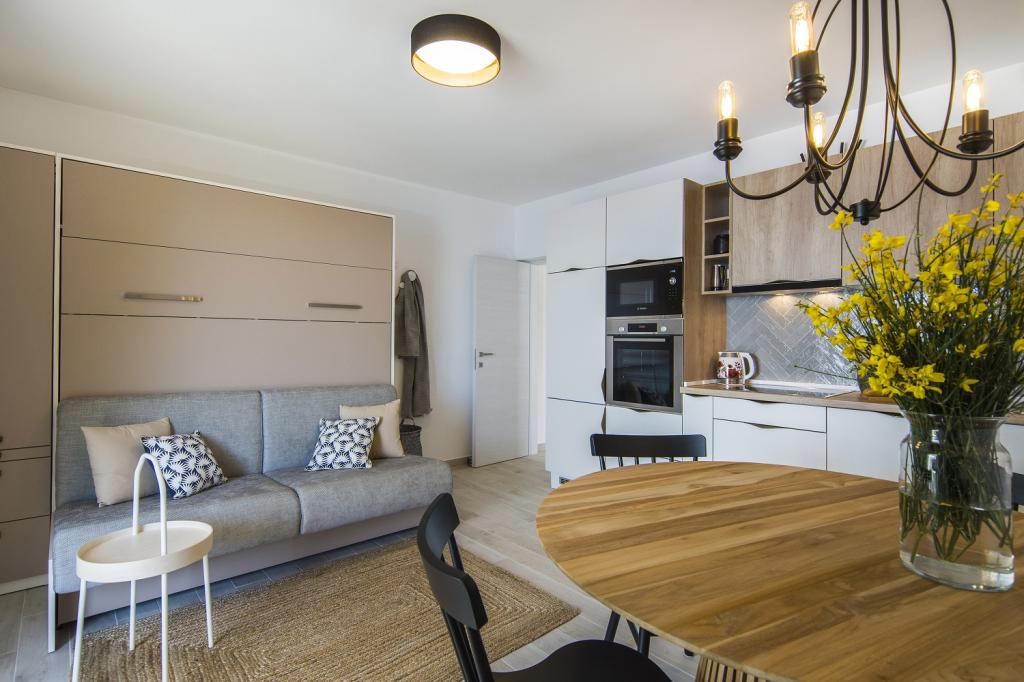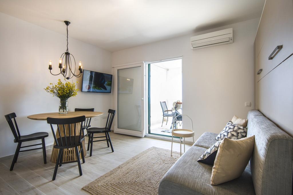 The apartment is not the cheapest, but it pays to spend more for a good standard. Very friendly hostess. Large rooms, large terrace, well equipped kitchen. Very clean. Very close shop - 20m. 30m to the sea. We were two adults and two children. I would recommend because it's worth. I hope someday to return.