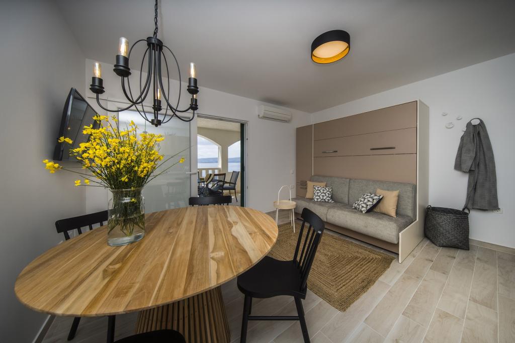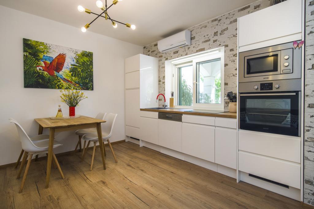 We used to have two large families with children in a large apartment 8 + 1. The description matched, the premises beautifully decorated, tastefully decorated, clean with practical equipment. We are very welcome, dishwasher + tablets, 2 refrigerators washing machine, oven and children TV and games. We also had towels available, which the housewife changed us after a few days. We really didn't miss anything in the kitchen - complete equipment. Great location - close to everywhere: the beach and the restaurant, grocery store right in front of the house, fruit, vegetables a few meters higher down the street. In the evening, a pleasant sitting with drinks and beer in the beach bar or on the terrace with nice sea views. We even saw dolphins from the terrace several times. The beach is clean with small round stones, the water is clear and pleasant. We completed a rafting trip on the Cetina river, a cruise on a cruise ship, climbed the castle in Omiš with a beautiful view, the Kotišina manor house and the Shrine of the Virgin Mary. One day we crossed beautiful lakes: Blue, Red and Green Lake. You can only bathe in Blue Lake. Mrs. Marica is very nice, characteristic and welcoming. The host again willingly helped us with grilling fish. Great stay. I heartily recommend.