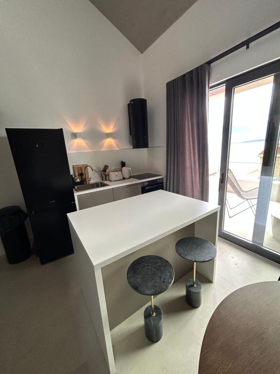 Modern studio apartments with a beautiful view of the Adriatic Sea. Just a few minutes from the beach and restaurants.