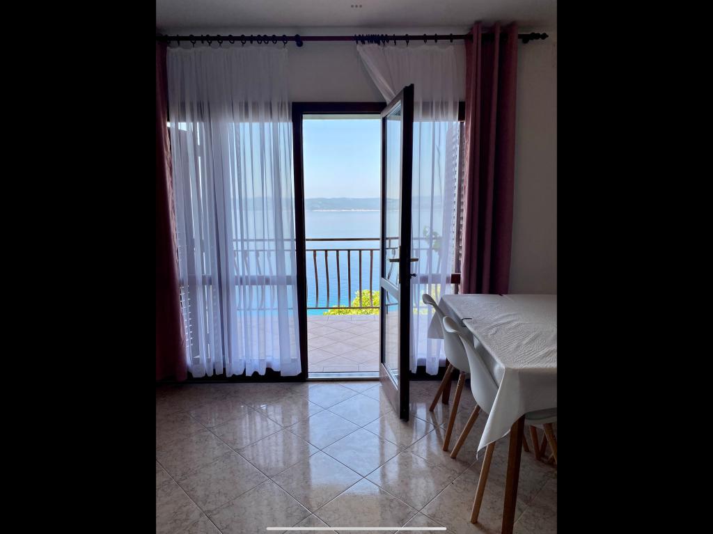 After arriving at the apartments, the outside of the place was charming. Beautiful views of both the mountains and the sea. I got the keys and paid for my stay (unfortunately, for the first time I did not receive a bill). The photos on the website are not current, so it would be worth updating them. Unfortunately, I quickly fell to the ground. The toilet was not cleaned well, there was a smell of urine and there were hairs left in the strainer in the shower. The bathroom had a small window onto the corridor, which did not fulfill its function anyway, as it looked out onto the hot corridor. Hot because there were two external air conditioning units installed in it. They hadn't been cleaned for a long time, so they were boiling to the max. The temperature in the corridor was higher than outside. Walking through the corridor was torture. When the window from the corridor was open, all the heat came inside. From our air conditioning or our neighbor's. The indoor air conditioning unit also barely worked, it certainly hadn't been cleaned before the season, which was visible from the dirt and dust on it. She also didn't have the strength to blow because it wasn't pressurized. Some strange air conditioning card activated the counter and air conditioning. The elderly gentleman who took care of the house informed us that if the temperature dropped to 0 degrees, the air conditioning would not work and we would have to pay extra. The older man's name is Tommy and he only speaks German The only plus point of the bathroom were clean towels and soap. The carpet by the shower tray (the photo from the bathroom is not current, the cabin is now closed) was dirty, we sacrificed our own T-shirt. The photo on the rooms is old. There are two single beds in the small room and a fold-out sofa bed in the room connected to the kitchen. TV with satellite only for German channels, no terrestrial TV. The kitchen was equipped with the right number of plates and cups for 4 people, there was less cutlery, and an advantage was the possibility of using the dishwasher, which we did not use because it was too large. The balcony was large, with a table, 4 chairs and a deckchair. There was an outdoor dryer. The view from the balcony of the sea, the island of Brac and the mountains is beautiful. Being in Croatia for the sixth time, I have mixed feelings. The place is beautiful and the apartment looks like its glory days are behind it. I would not recommend this room to ot