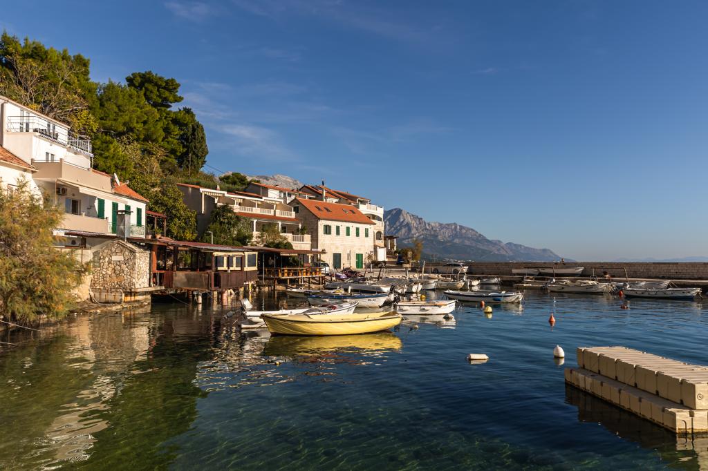 The idyllic Dalmatian Villa Stina is located in a quiet part of the fishing village of Pisak on the Omiš Riviera. The property is located 70 m as the crow flies from the sea, and offers a perfect vacation for 8 people who can be accommodated in 3 bedrooms equipped with spring box beds and one additional sofa bed for two people. All rooms and rooms in the house are air-conditioned with separate air conditioners. The house offers comfortable accommodation in a large living room that is connected to the kitchen with a spacious outdoor terrace overlooking the sea. The sea view is also offered from the superior room with a balcony. The remaining two rooms have an intimate view of the outdoor garden on the north side of the property. There is an outdoor barbecue at the back of the terrace. Free parking for 4 cars is located in front of the house and provides comfortable access for guests with luggage. The house is a few minutes walk from two beautiful natural pebble beaches. The distance from the town center and local shops is about 10 minutes walk.