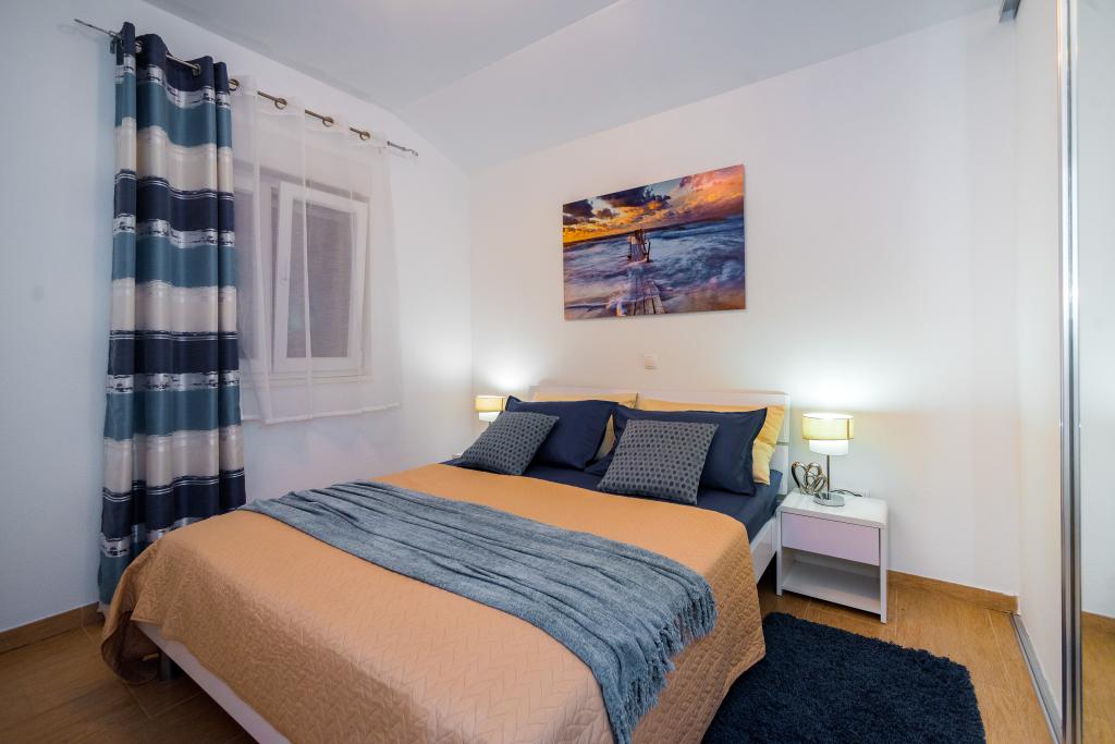 Vruja Villa is located in a small fishing and tourist village, Pisak between Split and Makarska. Pisak is ideal for family holidays and in love with sea and water sports. In Pisak you can rent a boat and go swimming to a nearby secluded beach or a full day excursion to the island of Brac. Villa Vruja has the possibility of accommodating up to 12 persons in two separate apartments of 4 2. Each apartment has two modern bedrooms, kitchen, living room, bathroom and a large terrace overlooking the sea, on the island of Brac. Both apartments have air conditioning, Wi-Fi, LED TV, satellite. Behind the house is a large gazebo with a grill. Villa Vruja away from the beach, 80m,