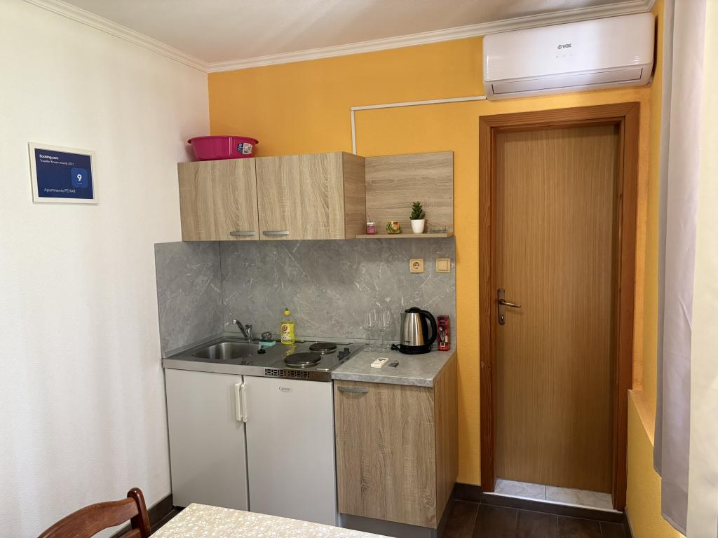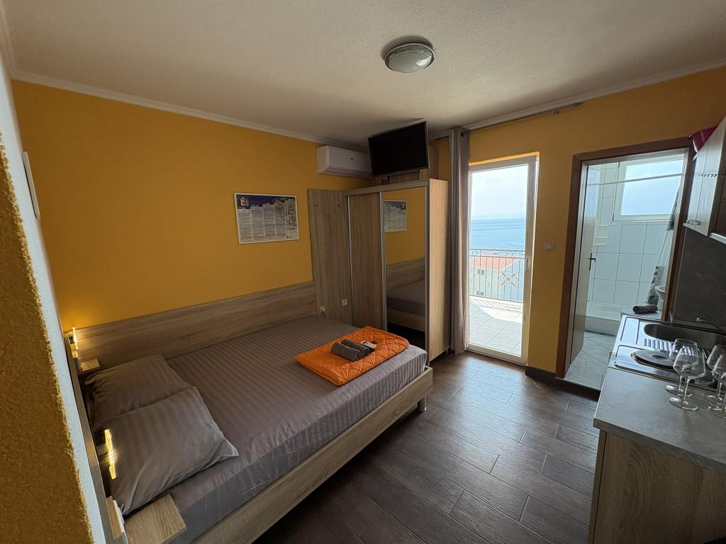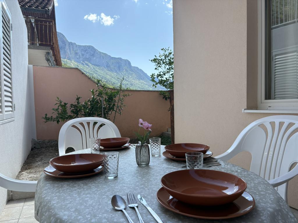 Makarska Riviera, Podaca. 6 studio apartments and 3 apartments located in Podaca, 70 steps from the sea. Access to the beach without steps, 200 meters away. Town center, shop, post office, children's park and bus station are only 200 meters away. Free WI-FI and air conditioning in each apartment.
