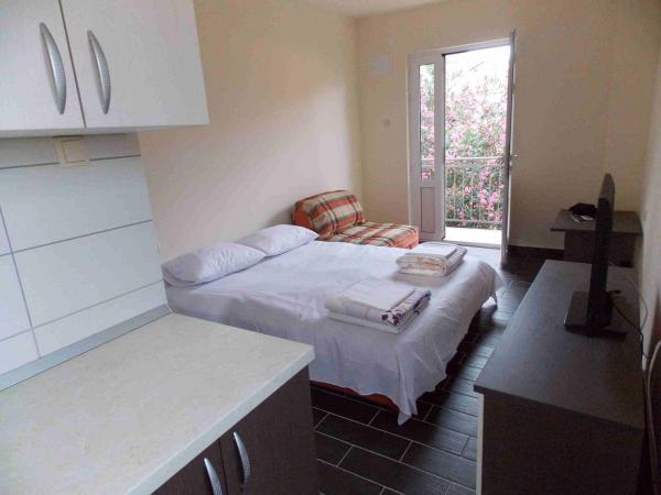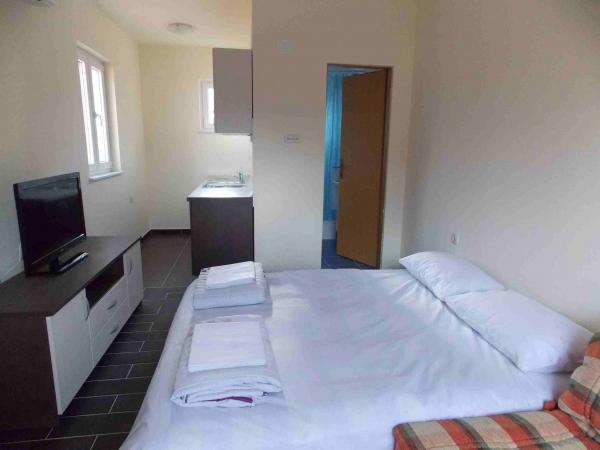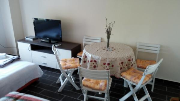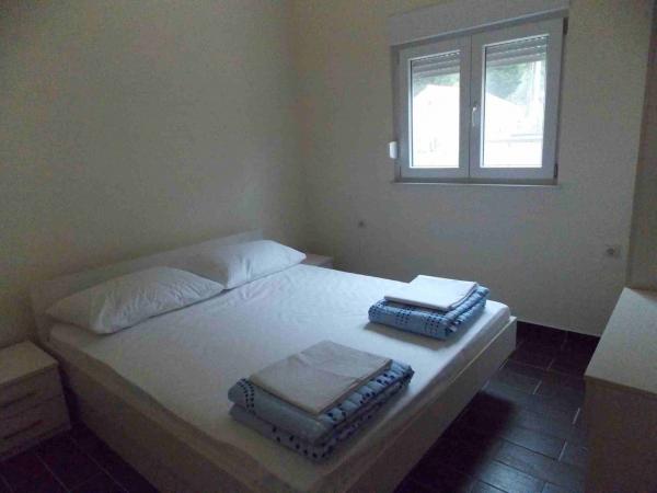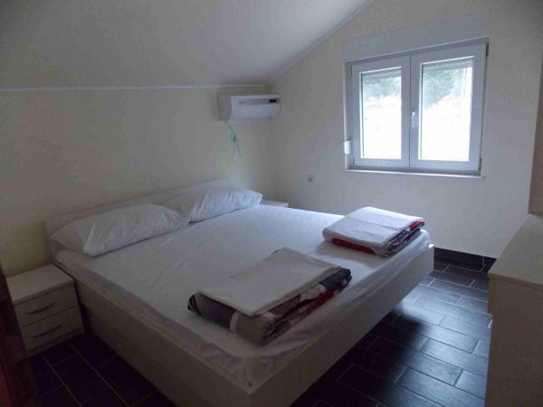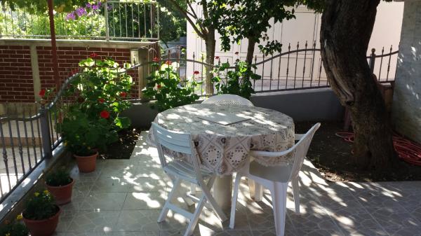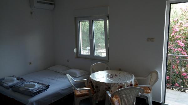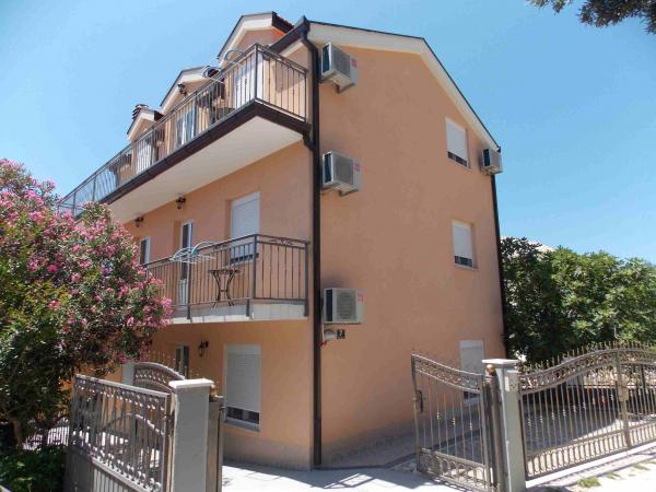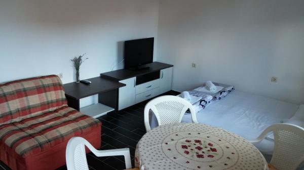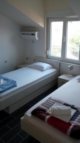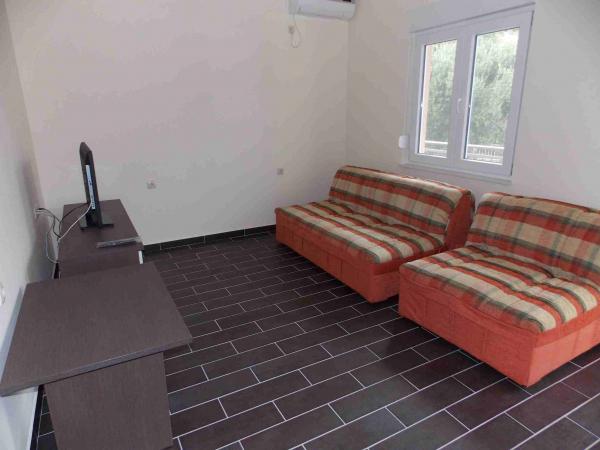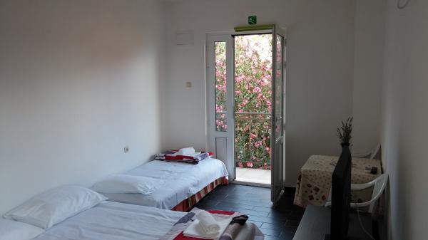 The apartments are situated in the center of the data. They are located 100m from the sea and beautiful beaches. Store, post office, sports field, church, bus stop and exchange within a radius of 40 m from the apartment. The facility consists of four suites, two separate apartments for two people with extra bed, one apartment for two people with three extra beds and a large apartment for four people and three extra beds. The apartments are new and equipped with air conditioning, TV, bathroom and kitchen. The apartments have the use of two terraces, and a courtyard with barbecue in the shade. Guests parking is provided, and the price includes tourist tax. Bed linen and towels are included and are changed every seven days.