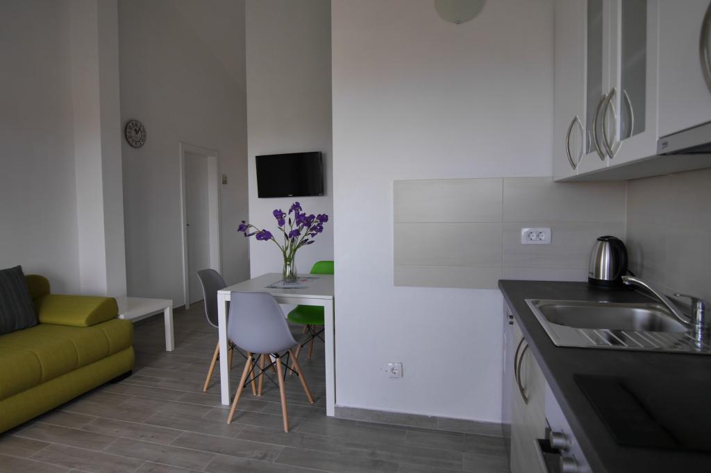 Apartments Tatjana are located in a small Dalmatian village Podaca about 30 kilometers south of Makarska. The place is extraordinary if you prefer a holiday in a completely quiet environment without crowds and noise. We offer three apartments that can accommodate 14 people in total. Two brand new one bedroom apartments are located on the second floor and are equipped with kitchen, bedroom, living room, bathroom, air conditioning, internet and a balcony overlooking the sea. On the first floor there is a two bedroom apartment with living room, fully equipped kitchen, bathroom, air conditioning terrace and internet. Parking is provided. On the south side of the house there is a garden with an orchard and a grill with a seating area where you can spend your free time. We are at the service of our guests and we will take care of all your needs during your stay. Children are welcome.