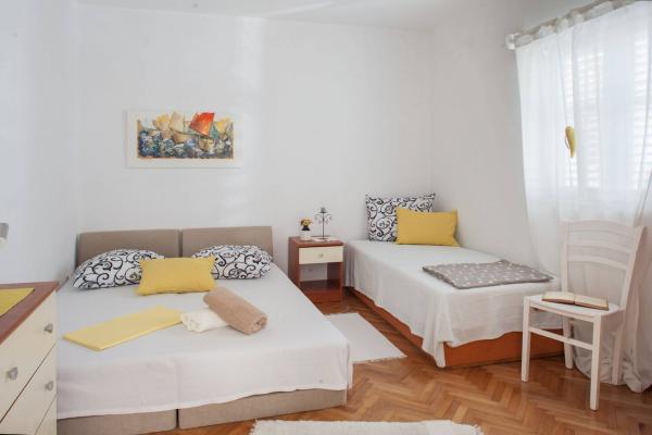 Apartment Kairos has been newly renovated and furnished last year. It is located in a quiet neighborhood with lots of family houses around. You can either sit on the balcony and enjoy the sea view or sit in the front yard and enjoy preparing delicious meals in the outside fireplace. Natural details in the apartment makes it cozy and warm and it gives you a feeling of a safe home.