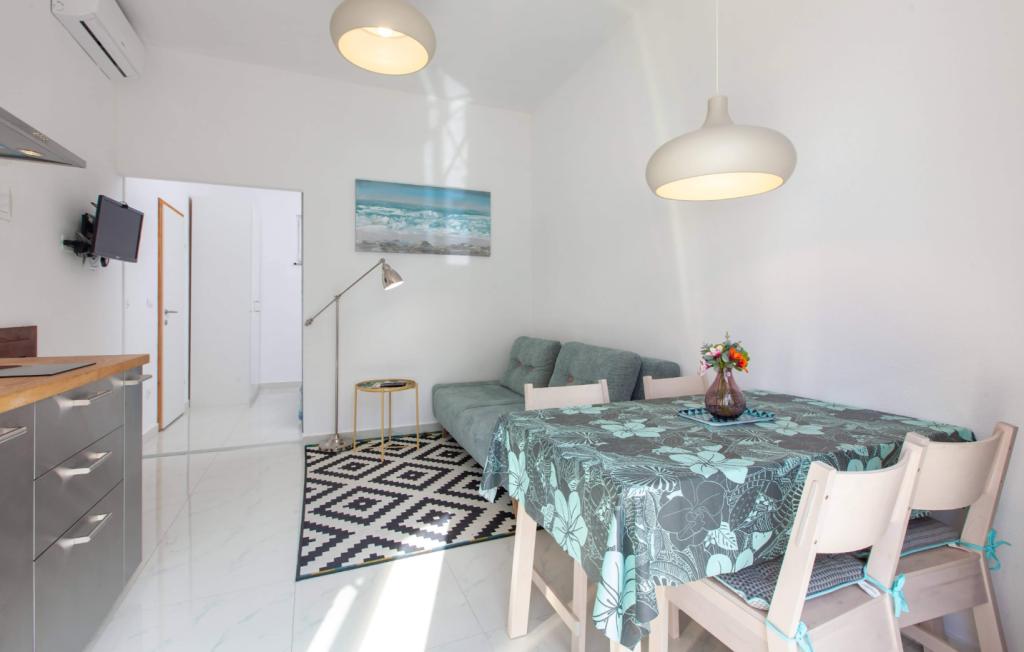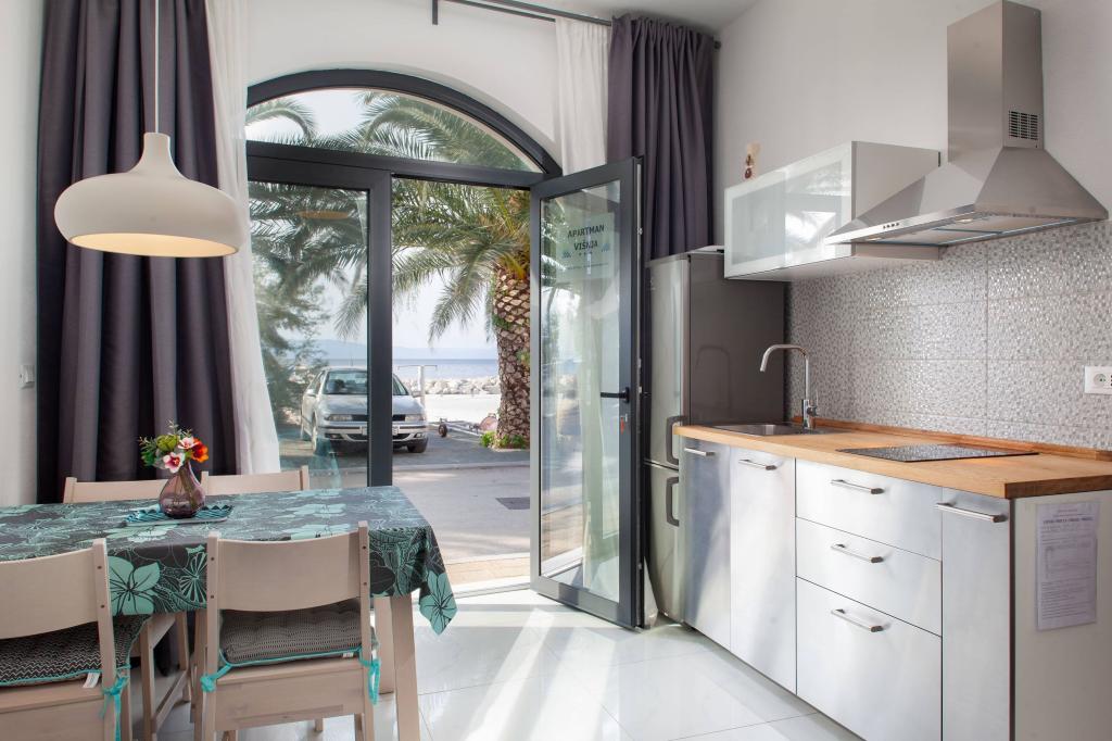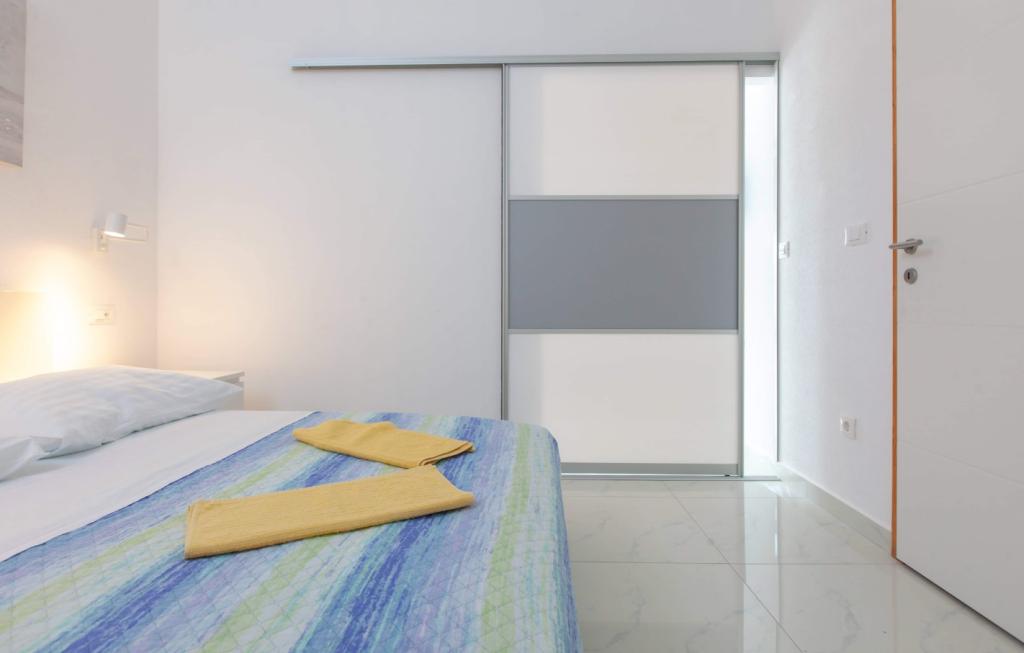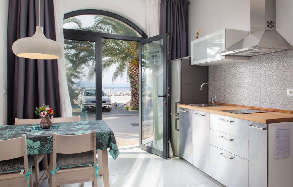 Apartment Višnja is located in a newly built stone house in one of the most beautiful and quiet parts of Podgora - Čaklje. Apartment Višnja is located on the ground floor of the house and is a step away from the beautiful pebble beach and is decorated according to the latest standards and includes air conditioning, satellite TV, wi-fi and parking. With the obzirorm on the ground floor it is ideal for people with mobility problems. Perhaps one of the biggest adut of this apartment is the terrace located on the first floor of the house, overlooking the beautiful marina Čaklje and the two medieval islands of Brac and Hvar. This apartment offers a true feeling of Mediterranean and tranquility, because Apartment Višnja is located in the part of Čakalja, which is almost completely devoid of traffic and urgency. But if you are craving for "moving", the Apartment Višnja is located some 500 m of light walks from the center of Podgora where you can find restaurants and cafes, although Čaklje itself has a small shop some 100 m from the apartments and a couple of restaurants and cafes. ATM is 100 m away from the apartment.