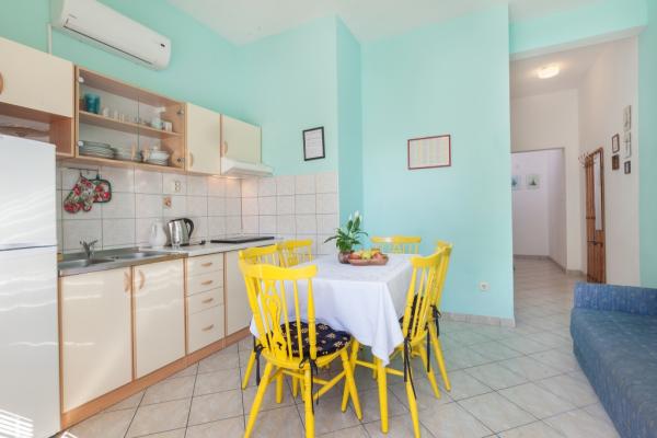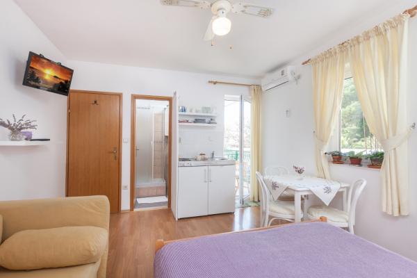 Our apartments are located at the entrance of Podgora, in the not so noisy area and is suitable for family holidays. New apartment in the building of recent construction, equipped with modern furniture in order to ensure a more comfortable stay for our visitors. The stone façade and natural shade in the yard give a typical Dalmatian atmosphere. The facility is located a short walk from the sea, beach, center and shops. The immediate vicinity of forests and olive groves guarantee a fresh and clean air, and using hiking trails you can enjoy the beautiful view of the sea, islands and mountains.