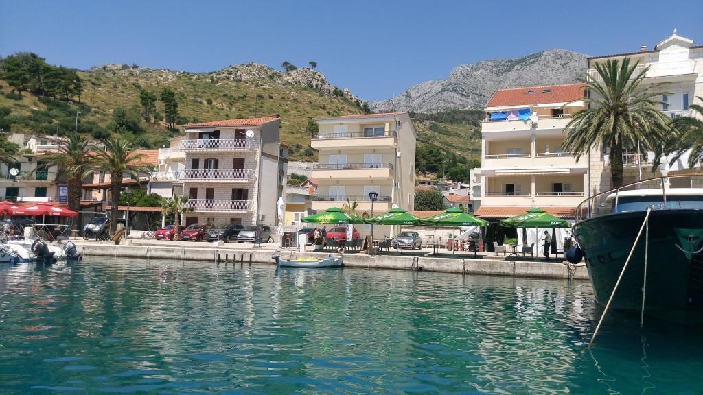 Podgora is situated in the heart of Dalmatia at the foot of the mountain Biokovo and is part of the Makarska Riviera. It is located in the ecologically cleanest part of the Adriatic Sea with crystal clear water and is provided Podgora got the epithet of the most desirable tourist and natural oasis. For all your visitors Podgora offers accommodation in apartments and rooms of family houses, hotels and apartments. Podgora has always been known for fishing with this is the current port, which is located in the center of town, always full of fishing boats and other fishing vessels. This guarantees that you will surely enjoy a daily fresh seafood specialties. Podgora not leave any of your old village which today still maintain their centuries-old olive groves and vineyards which visitors like to visit while enjoying the breathtaking views of the surrounding countryside and at the same time tasting local wines and Dalmatian cuisine. This small and attractive place and is proud of its beautiful beaches and nearby coves that tourists additionally provides a pleasant and memorable experience. Visit Podgora and see the beauty that you offer this small fishing village. Gaston Apartments are located in Marina Podgora next to the sea, with a beautiful view of the bay, the beach, the promena