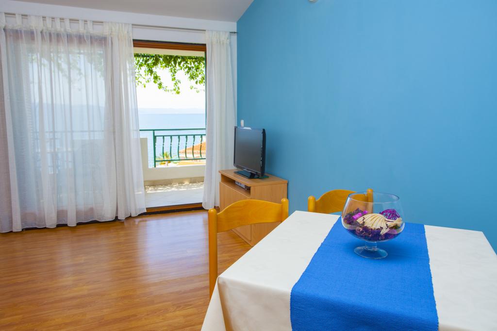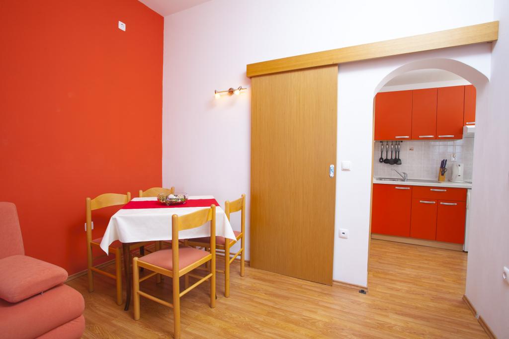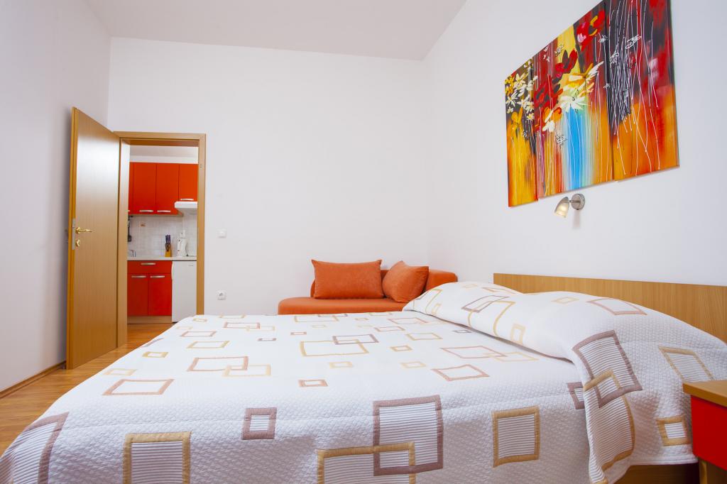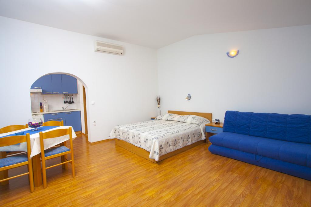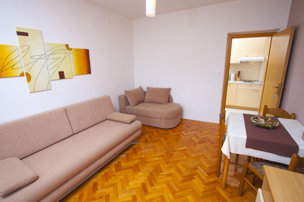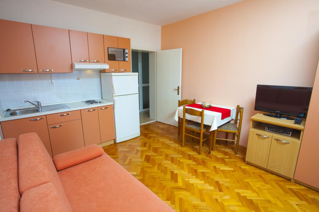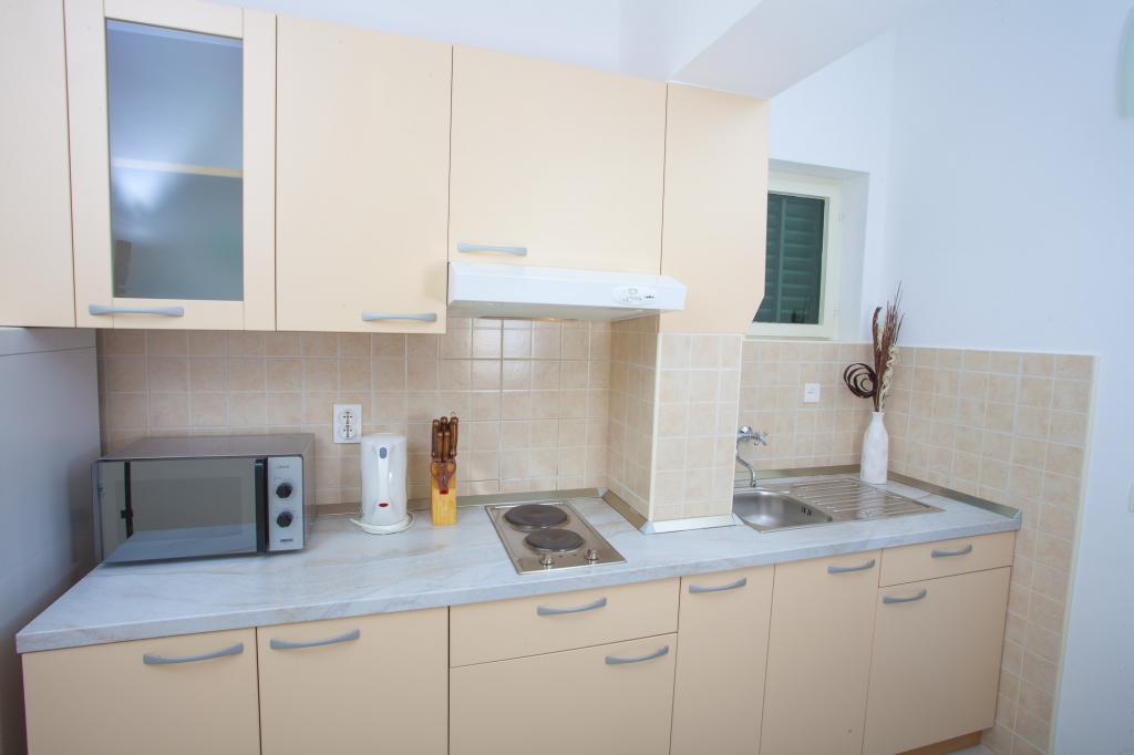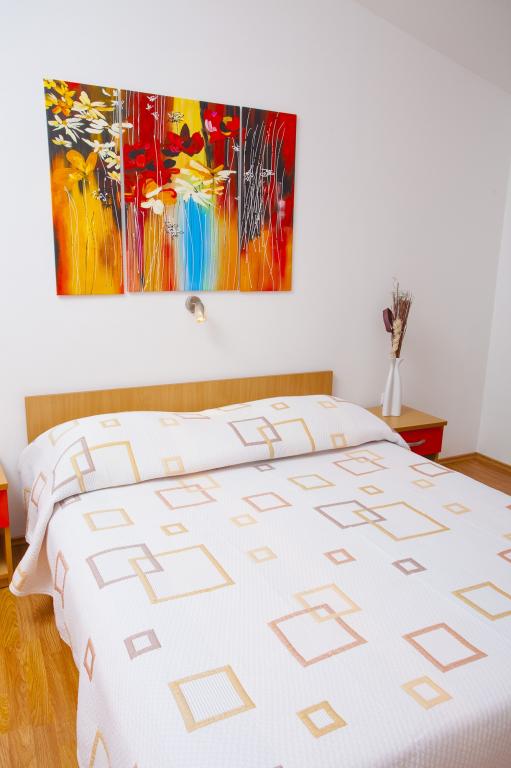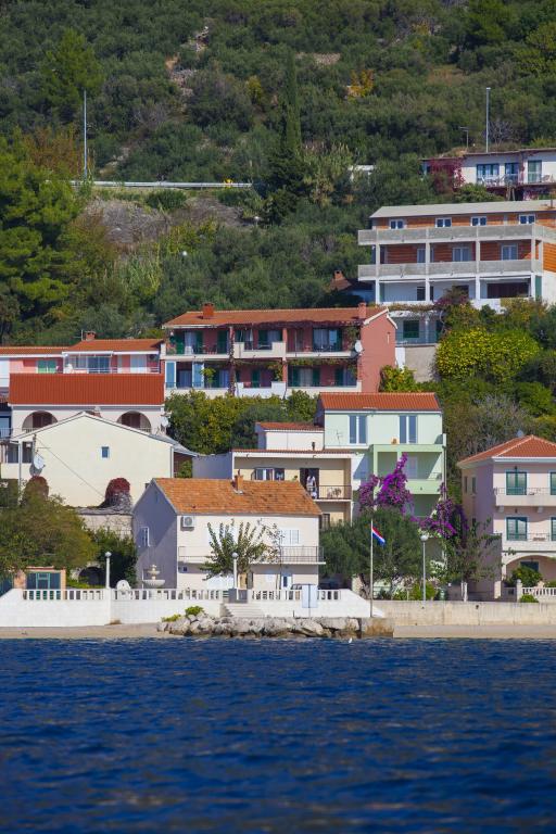 Surrounded by greenery, Apartments Kunac is located in a quiet bay, only 70 meters from a pebble beach with a small pier. The promenade by the sea leads to the center, 700 meters away. The apartments are 100 meters from a restaurant serving fish and meat specialties and 150 meters from a grocery store. Cafés, shops, galleries and various nightly entertainment facilities are 700 meters away. There is a ferry port in Makarska, and the nearest airport is in Split, 90 km from the apartments. In the center of Podgora there are numerous restaurants, pizzerias and coffee bars with live music and an olive oil tasting room where we sell our products.