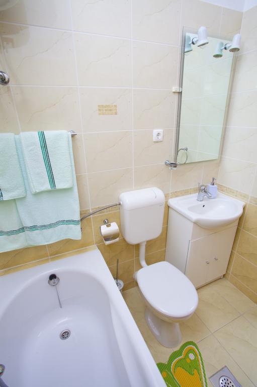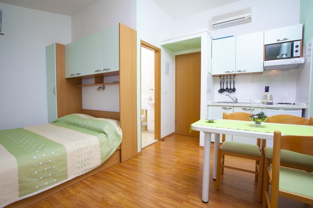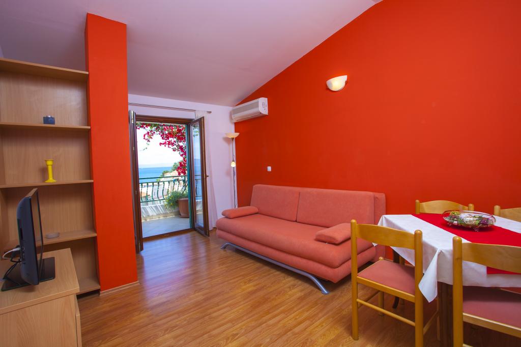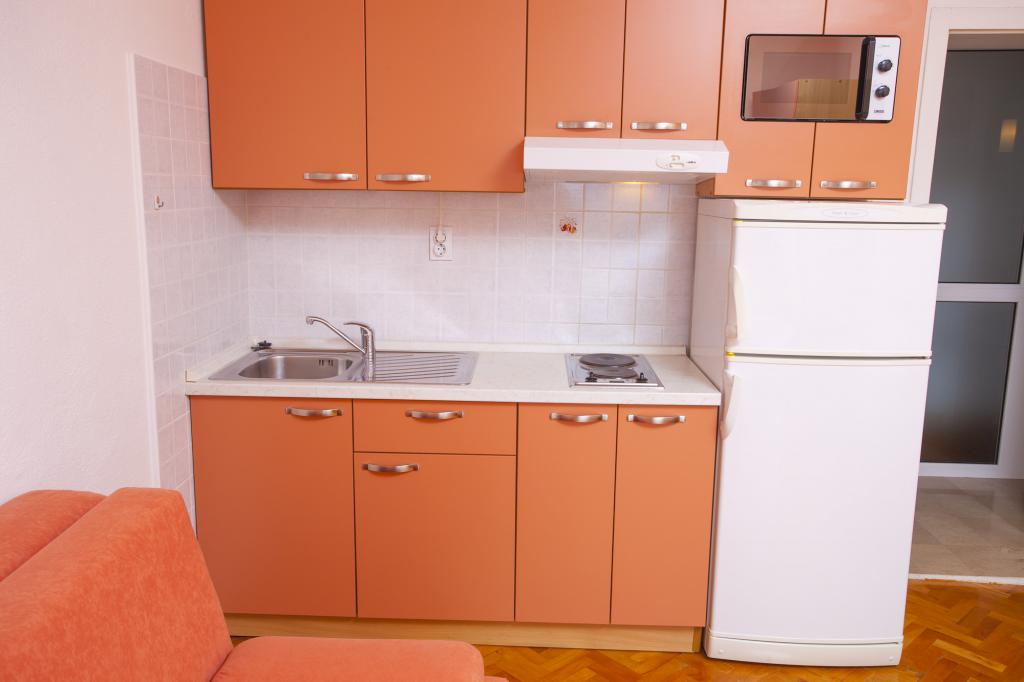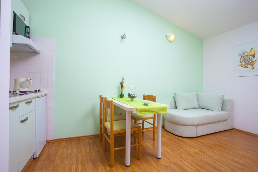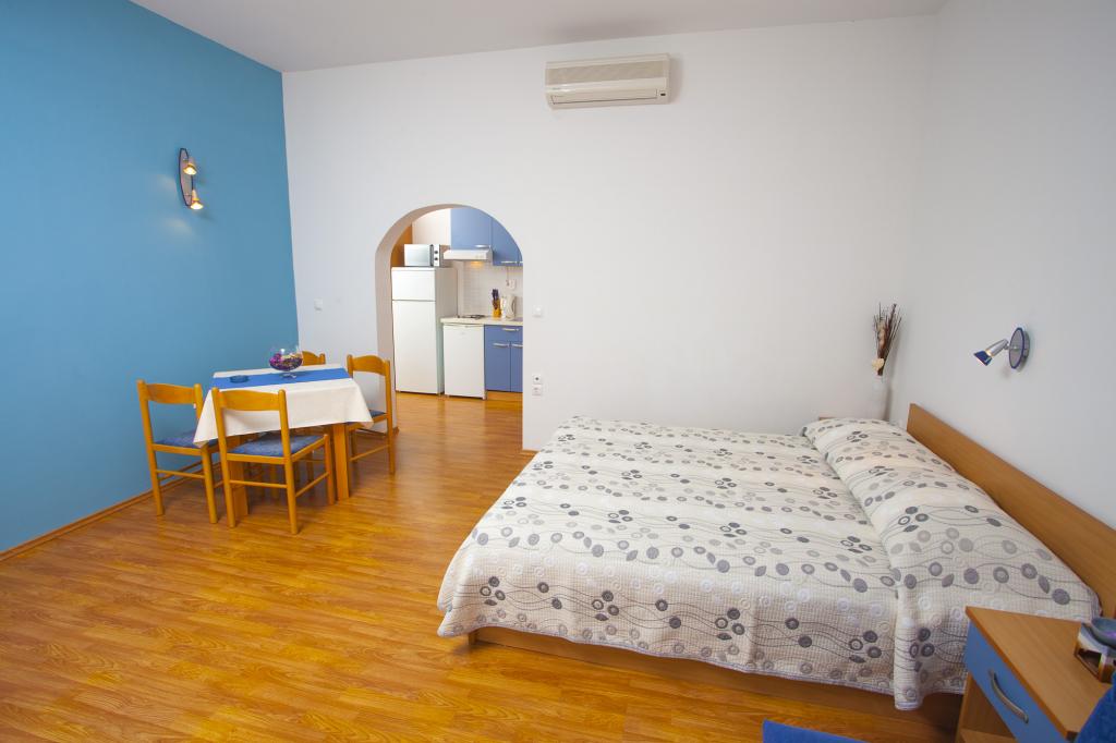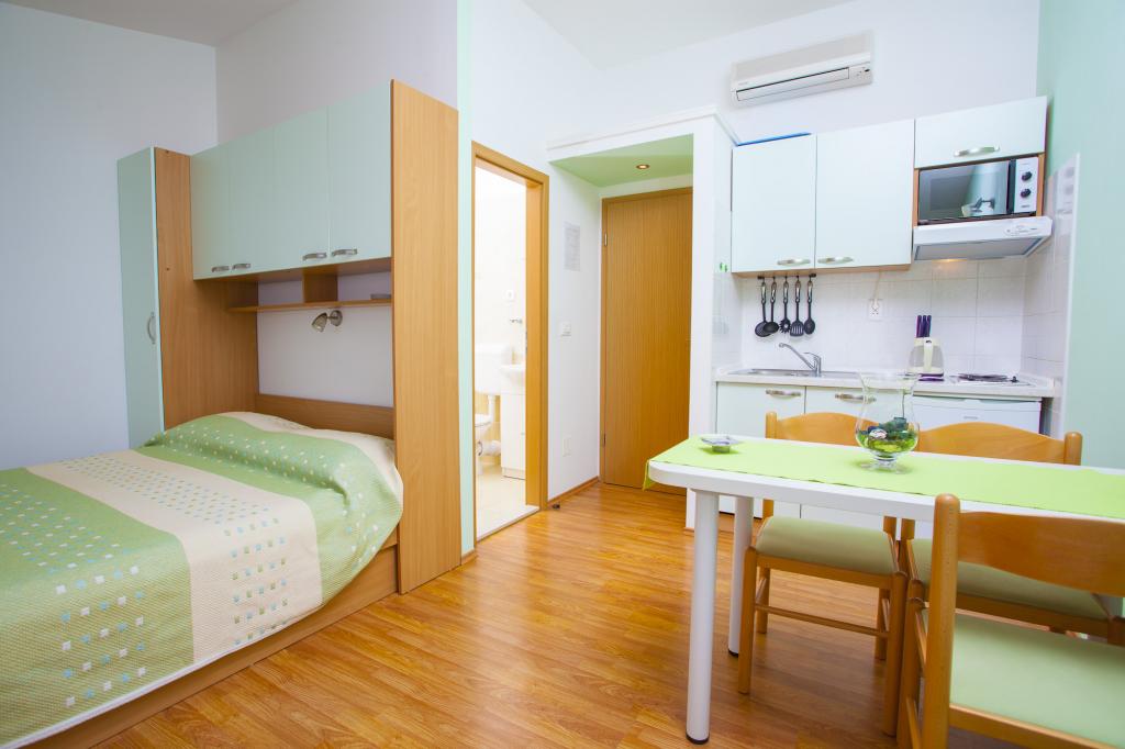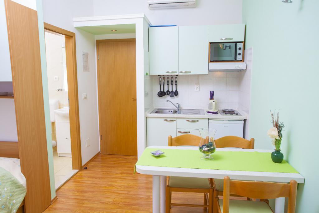 Surrounded by greenery, Apartments Kunac is located in a quiet bay, only 70 meters from a pebble beach with a small pier. The promenade by the sea leads to the center, 700 meters away. The apartments are 100 meters from a restaurant serving fish and meat specialties and 150 meters from a grocery store. Cafés, shops, galleries and various nightly entertainment facilities are 700 meters away. There is a ferry port in Makarska, and the nearest airport is in Split, 90 km from the apartments. In the center of Podgora there are numerous restaurants, pizzerias and coffee bars with live music and an olive oil tasting room where we sell our products.