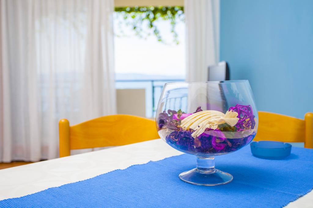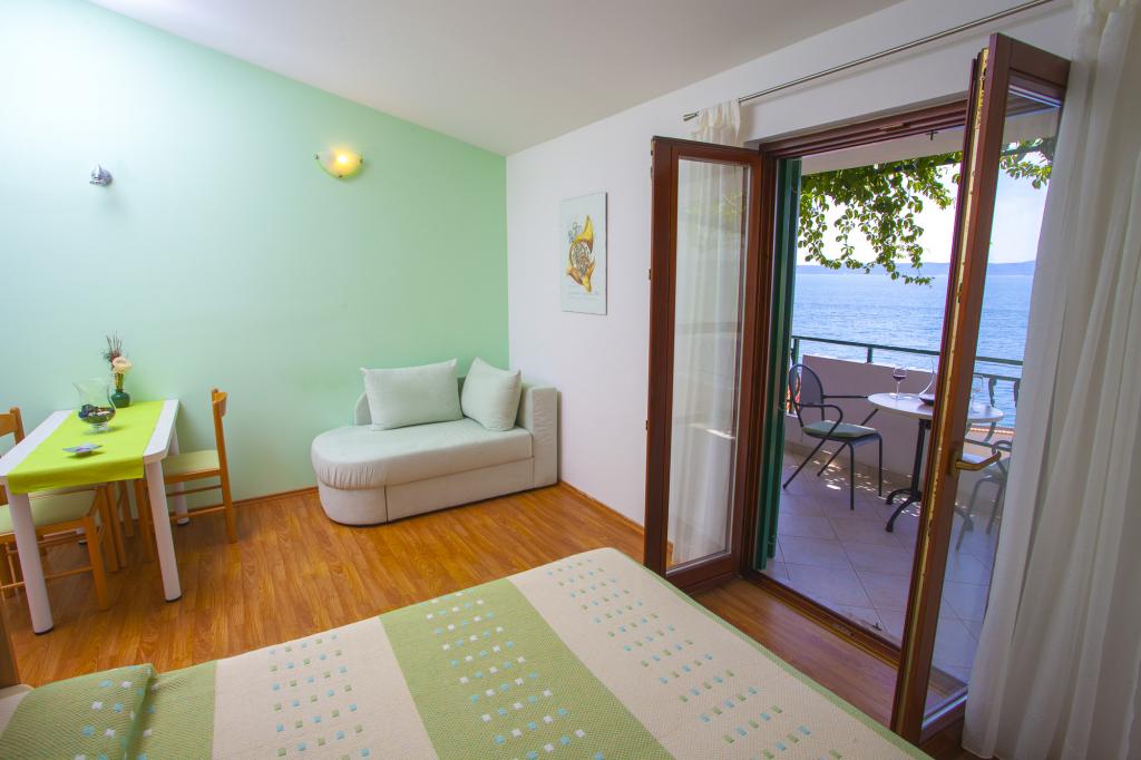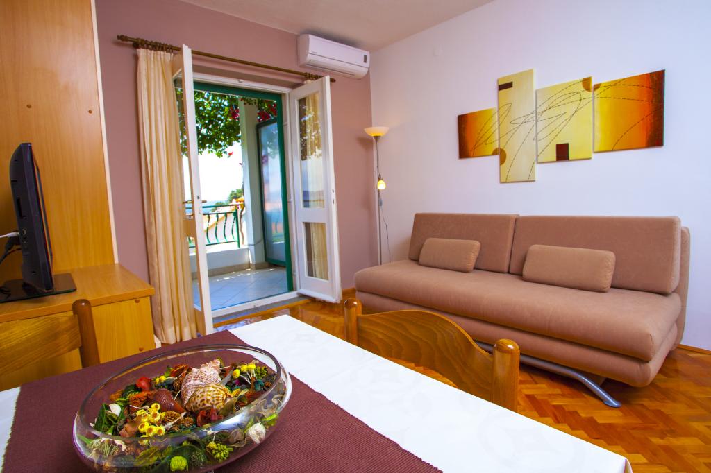 Upon arrival at the apartment, all our guests will receive a chilled welcome drink. Facilities for water sports such as paragliding and diving and scooter and motor boat rental services are available on the beach and can be booked on site. It is also possible to organize day trips to the islands or visit the mountain Biokovo by bike. In the facility it is possible to taste and buy our extra virgin olive oil and essential oils from our own production, which we will be happy to present to you.