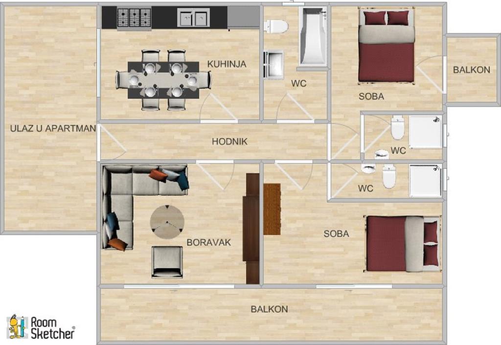 Apartment for four persons with two extra beds (80 m2)