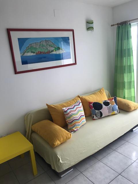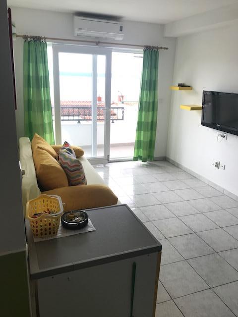 When we arrived, I was surprised by how well-equipped the place was with everything we might need during our stay. There were plenty of towels, a hairdryer, a microwave, a toaster, and an oven. The kitchen was equipped with pots, pans, a blender, and all the necessary plates, glasses, and cups. The large living room and two bedrooms were fully furnished. There was a huge terrace with a beautiful sea view. Everything was clean and well-maintained. The owners were very friendly. We were very pleased with our stay. I highly recommend it!