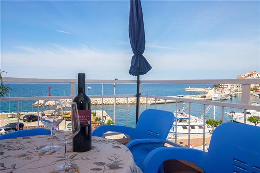 We highly recommend the apartment to everyone! Absolutely great position opposite the port and in the center, a short walk to restaurants, the beach both on one side and the other very close. Amazing view from the terrace - the sea within reach ..... Apartment modern, very well equipped, in the kitchen you will find everything you need, larger refrigerator with separate freezer, smaller bathroom but fully adequate, functional air conditioning included, 2 balconies. Carefully cleaned - towels and bed linen are changed during the stay. Everything is perfect in one word! Owners very friendly and hospitable.