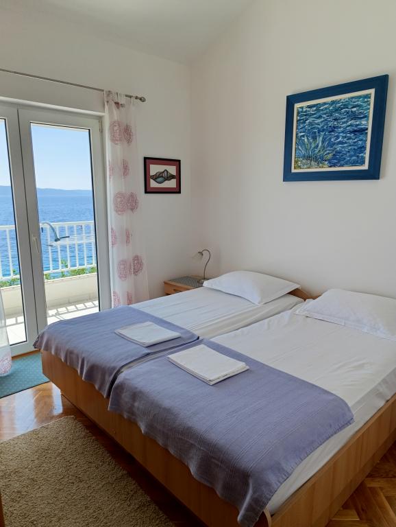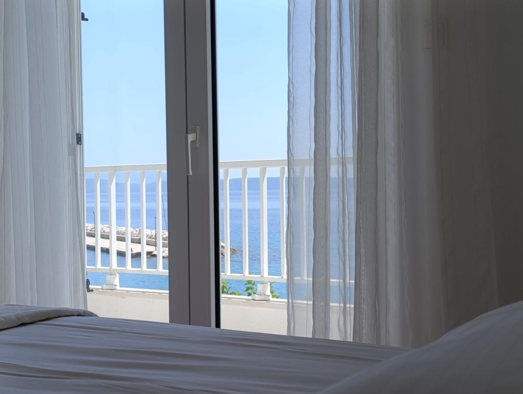 Apartments in the first row to the sea. Every room has a sea view. The beach is in front of the house. Parking (one space per apartment) is located in front of the house and is included in the price. Two restaurants and a shop nearby. The facility is located in a quiet part of town, 15 minutes' walk from the center. The nudist beach is outside the village and 300 meters away.
