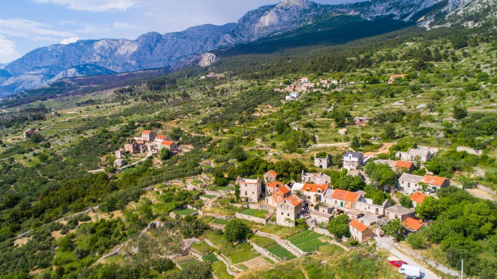 Residential tax is included in price.The house is located on the slopes of the mountain Biokovo/1762 m/, in the Nature Park, where there is also a beautiful SKY WALK with many marked hiking and biking trails. Surrounded by gardens, olive trees, a pine forest and the morning awakening of the "orchestra" of birds in a rural part of the village, ideal for a quiet family vacation, suitable for people with allergies or respiratory problems. Podgora will welcome you with its 4 km long beautiful white pebble beaches. The distance from the sea, the beach and the center is 3.6 km, with all necessary facilities: shops, market with local products, fresh fish, fruits and vegetables. Restaurants, bars, pastry shops, water sports, taxi, bus, day trips with a local guide to get to know the heritage, etc. There are very few neighbors and they are very quiet and discreet. The host lives in another location but is available by phone.