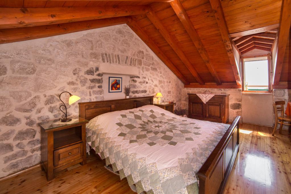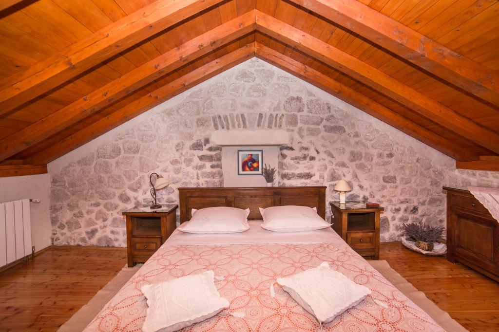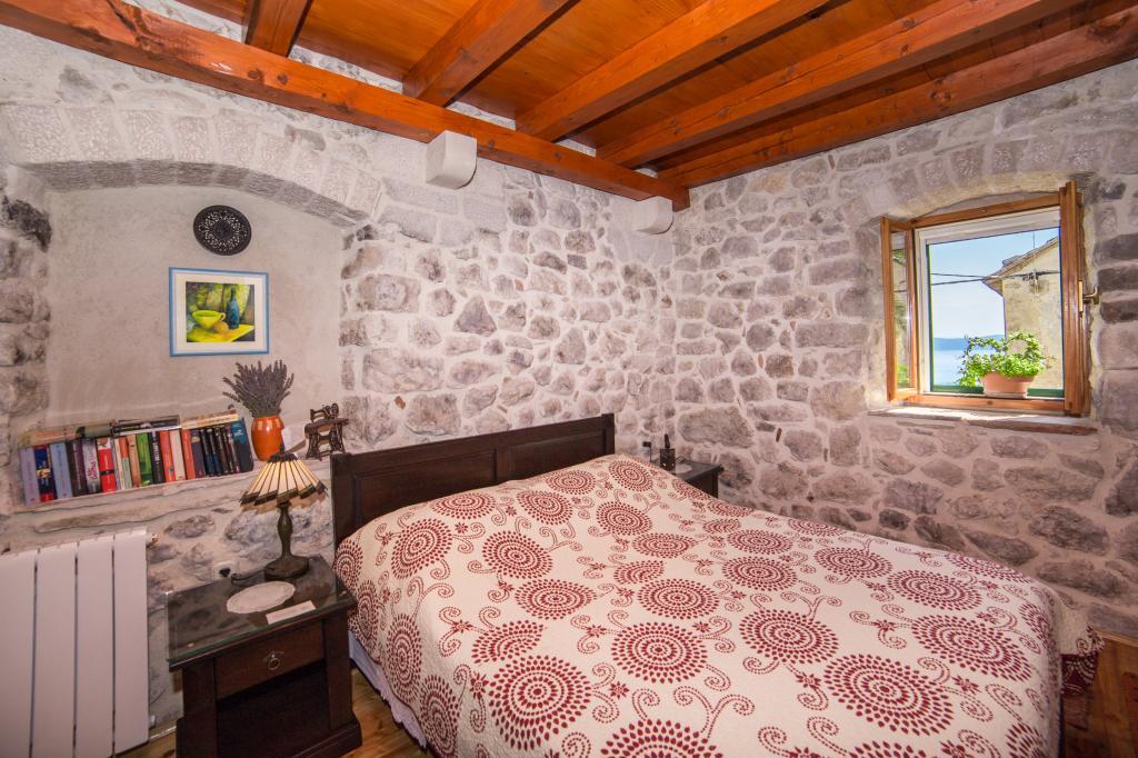 An old stone house completely renovated in traditional Dalmatian style, to meet all your vacation needs, and it will surely touch your heart and soul. Built in 1706 , and then during Napoleon's/invasion/occupation, 1806. set on fire, and finally, in 2006-2010 restored by the owner with care and love, stone by stone. The house has its own story, and the host will tell it to you during the hospitality/with a welcome drink. Two bedrooms are spacious 25m2, with stone walls, high-quality wooden furniture, with two bathrooms, equipped kitchen with living room and toilet. In front of the house is a yard and a terrace with a barbecue and deckchairs for resting. Satellite TV. Internet, air conditioning, dishwasher, washing machine, microwave oven, library with books (50). Let our house be your home, enjoy it and keep it as your own. It has a beautiful view of the sea and the islands of Hvar, Brač, Korčula and the Pelješac peninsula, as well as divine sunrises and sunsets.