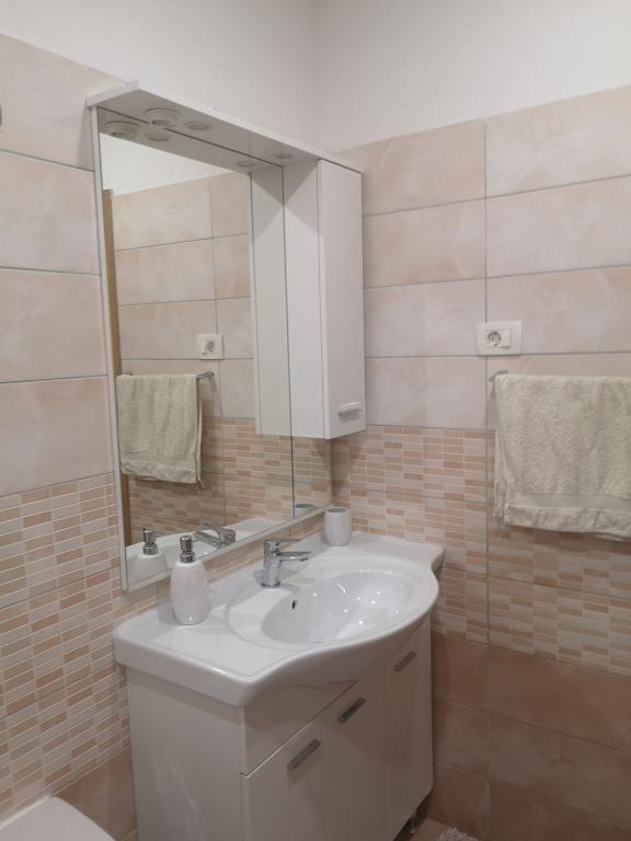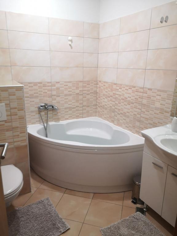 The apartment is located 10km from the center of Split. The apartment is located on the ground floor. The apartment offers air-conditioned accommodation, a balcony, free internet and a parking space. The apartment has two bedrooms, two bathrooms, one with bath, and the other with shower, flat screen TV and satellite channels, equipped kitchen with washing machine and refrigerator, washing machine. The beach is 80m from the apartment, on the beach there are cafes and restaurants, and a bakery and a supermarket are 50m away. Bačvice Beach is located 8km from the apartment. Shopping Center City Center One 4km, Mall of Split 6km, Joker 9km. Split airport 30km, bus station 12km, railway station 12km.