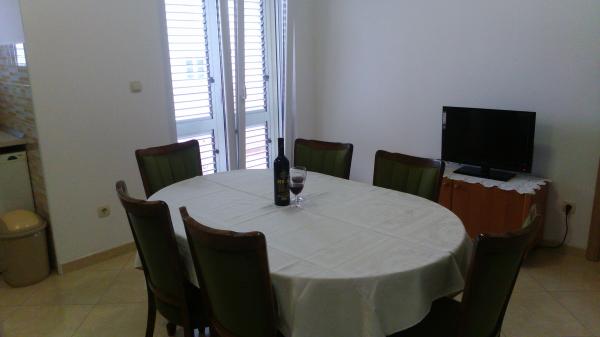 Apartment Dadic is located 10 minutes walk to the beach, due to the distance from the main road where you can find peace and quiet for you and your children. At your service are your free 2 parking places and grill, the price includes the use of the Internet, bed linen, air conditioning. The apartment has two balconies where you can also sit in peace and spend time. On the back side of the building have a main entrance to the staircase leading to the apartment, which is secured by a fence.