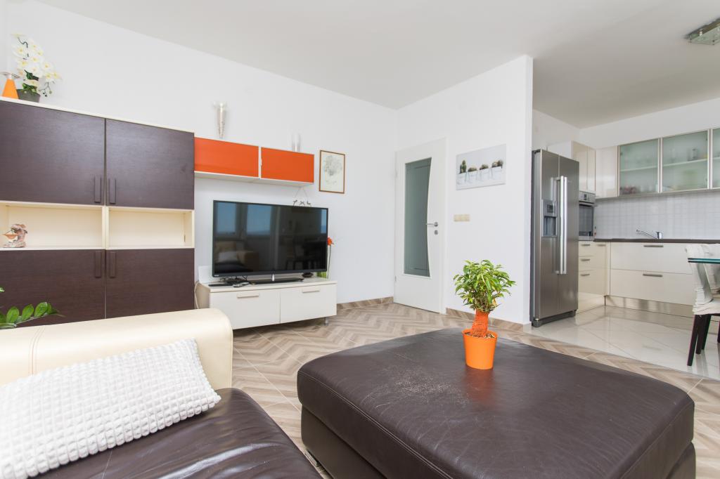 Apartment Emino is located in the heart of Podstrana, just a few kilometers from the city of Split. This location is most adorned by the distance from the sea which is only 100 meters and a beautiful view that will not leave anyone indifferent. The apartment has three bedrooms, two bathrooms and a balcony with a beautiful view and barbecue to enjoy, the size of the apartment is 103 m2. The apartment has wifi, two air conditioners, a parking space and all possible equipment you will need during your stay.