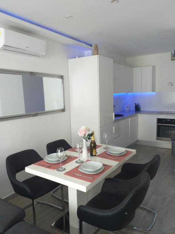 The apartments are located 10km from the center of Split. The apartment offers air-conditioned accommodation, a sea-view terrace and free internet. The apartment has 2 rooms, a flat-screen TV and satellite programs, a fully equipped kitchen with a washing machine and a refrigerator, a washing machine. In one room there is a baby cot upon request. Bačvice beach is located 8km from the apartment. Shopping Center City Center One 4km, Mall of Split 6km, Joker 9km. Split Airport 30km, bus station 12km, railway station 12km.