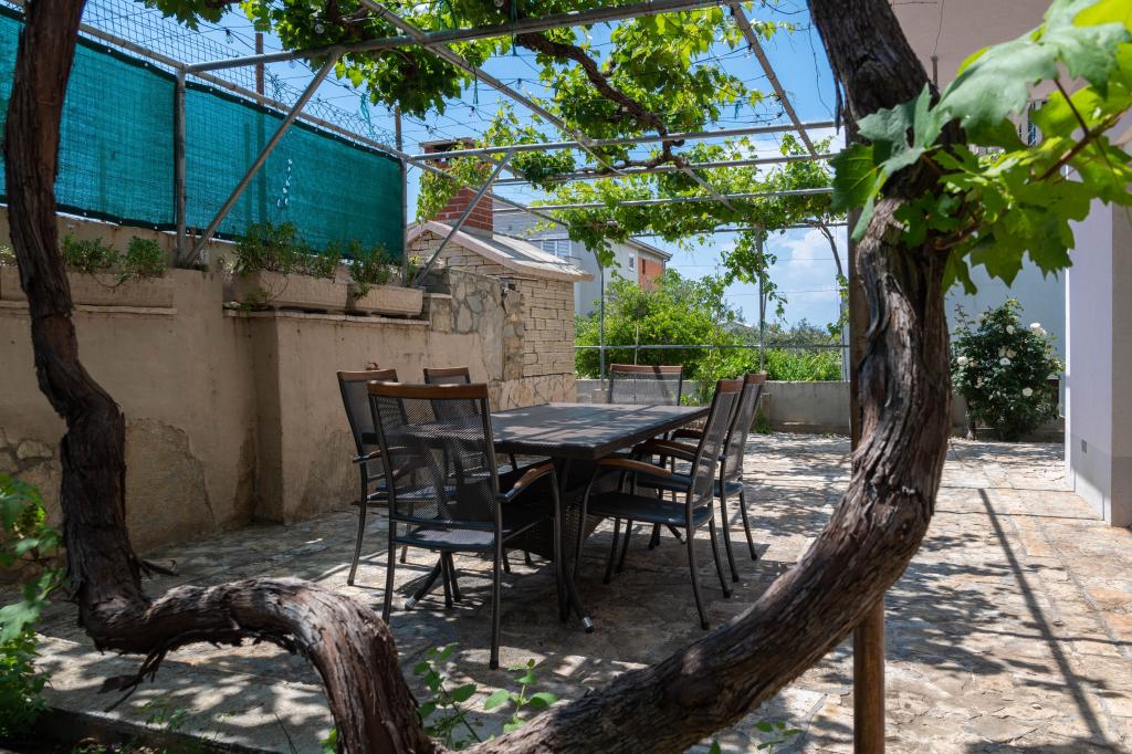 Apartment Laganini is a charming accommodation in Podstrana, Croatia, 300m from the shoreline with some of the most beautiful beaches that Podstrana is known for. Conveniently located 15 mins from vibrant Split. Highlights include a spacious outdoor area with BBQ spot for guests to unwind and enjoy. The apartment is pretty spacious for 6 people, with 3 separate bedrooms and 2 full baths. There is also a sofa that can be turned into a sofa-bed, therefore the apartment is also suited for 7 people. It is located at the ground floor with a private entrance that is connected directly with the terrace that has natural shade from the grape vines. The nearest beach is only a 5 minute walk downhill from the apartment, and about an 8 minute walk back from the beach because of the uphill terrain like the rest of Dalmatia :)