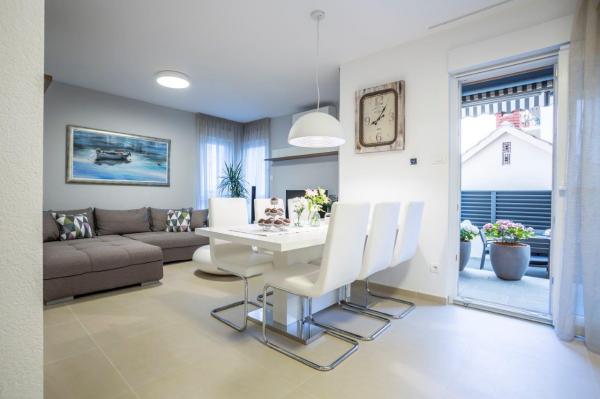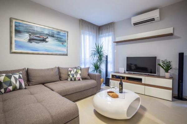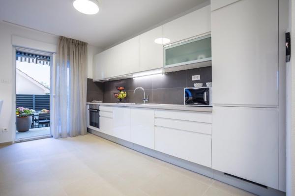 Brand new apartment with two bedrooms, a living room and a garden with barbecue located 300 m from the sea and a beautiful beach located in the quiet part of town called Strozanac. The apartment is 10 minutes by car from the famous tourist town of Split, 30 minutes from the old, UNESCO tourist town of Trogir, 60 minutes from the national park. It is equipped with all necessary equipment including satellite TV and unlimited high speed internet. Nearby are restaurants, shops, marina, golf course and tennis courts. Nearby is also a tourist office that will give you all the information regarding the many different trips and daily activities: rafting, boat trips, cycling, visit ethnic villages, etc.