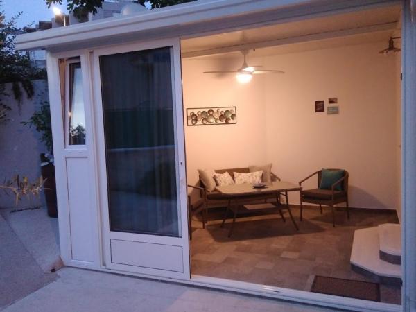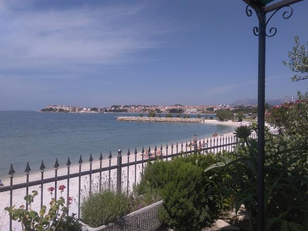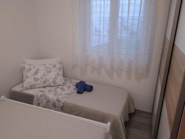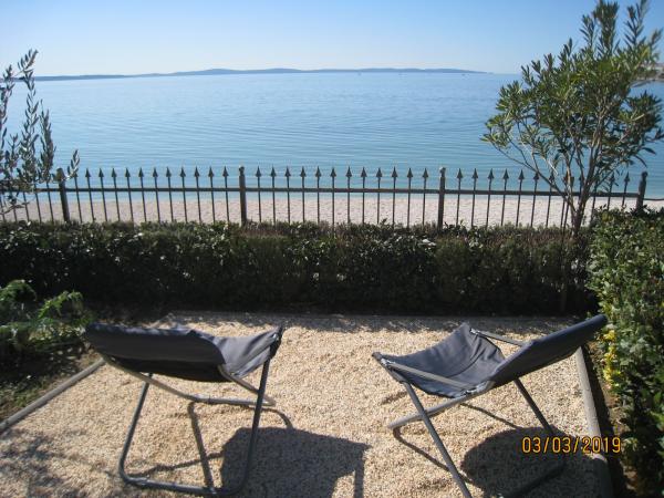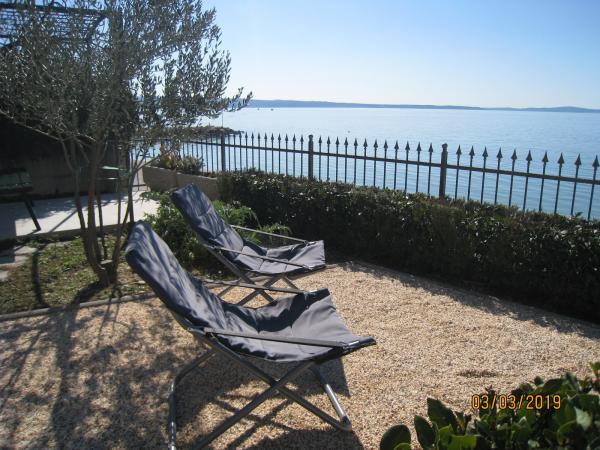 Our apartment is located in the first row to the sea, in Strozanj, a small village in the tourist town of Podstrana. An extra bed can not be accommodated in the apartment, but if you prefer, another child can sleep up to 5 years old on a large bed. The bus stop is 5 min. walk from the apartment, and for your vehicle we have a private parking lot. The apartment is located on the ground floor of a family house, with no sea view, but you walk a few steps to the sea and the pebble beach leads through our garden. In our garden sunbathing, you can relax with a morning coffee or an evening sunset with a view of the sea. At your disposal you have a sunshade and deck chairs where you can sunbathe and rest in our garden or take them to the beach closer to the sea. Enjoy walking through the boat harbor to the newly-built beach on one side or to the complex of the famous Lions hotel on the other side of the seaside. Visit the city of Split and Diocletian's 1700-year-old palace (located only 8 km from the apartments) and enjoy the summertime of the city!