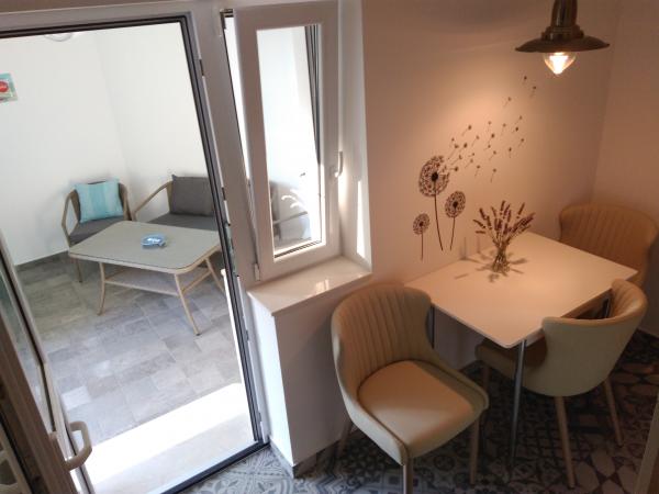 Read more Accommodation unitsAdvance payment of 30% when booking on the giro account of the owner of the apartment and the rest of the amount upon arrival in the apartment. Ideal arrival time in the apartment is after 14 h and departure from the apartment until 10:00 h or by arrangement, depending on the availability of the apartment. The apartment has a wi-fi signal available, but not in the bedroom. Please make sure that at the time of booking you have to provide your cell phone number and contact us several days before your arrival. If you have any further questions or wishes, please feel free to contact us by email.