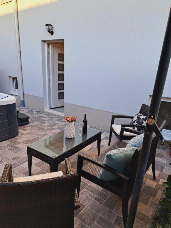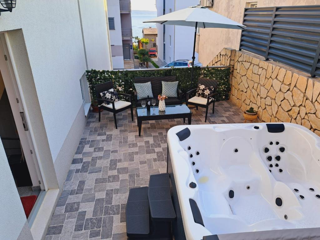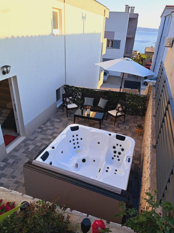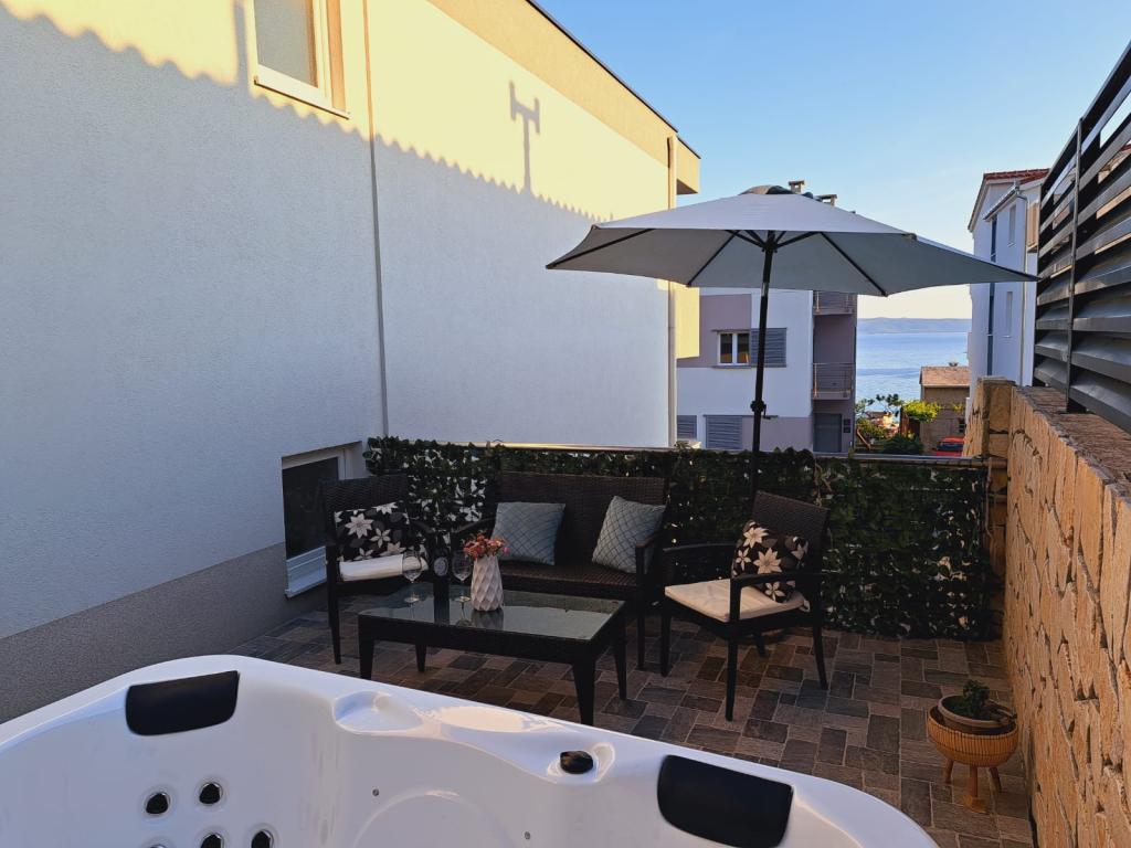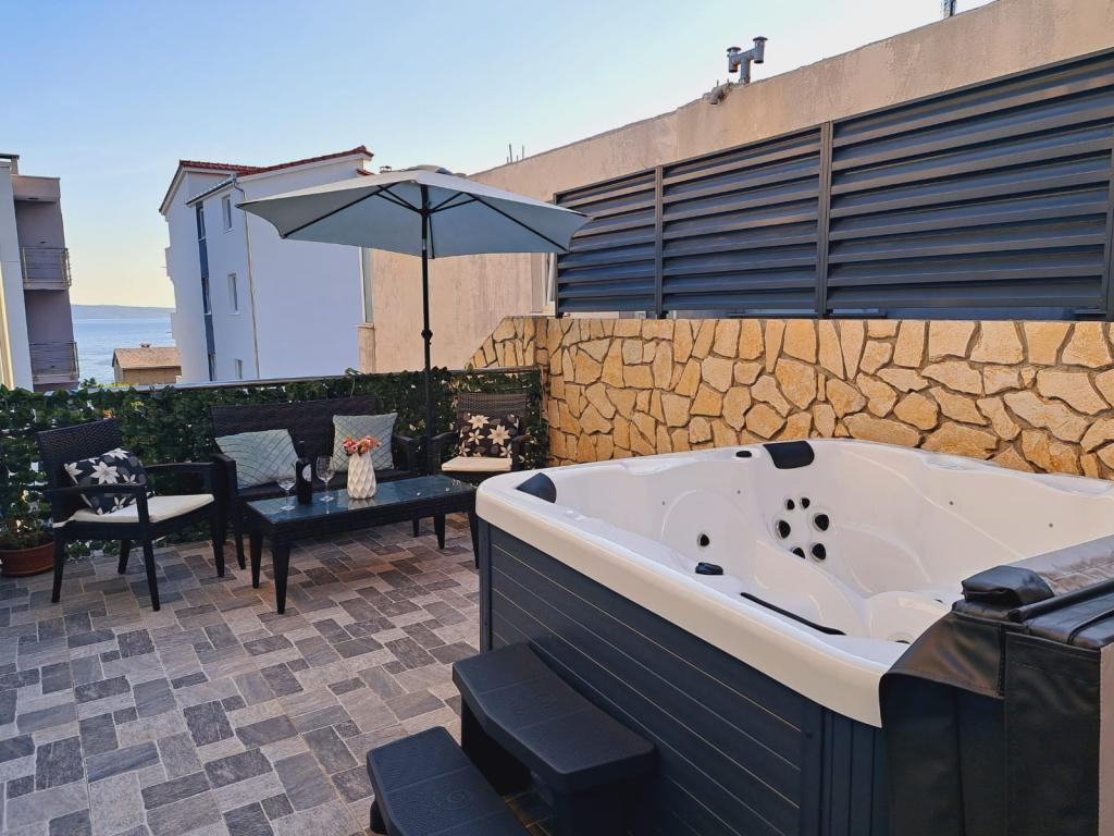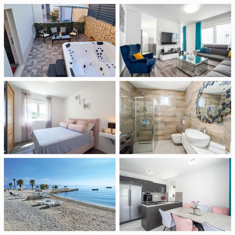 The new and fully equipped apartment is located in a quiet area with a beautiful view of the sea. Ideal for your peaceful vacation with the family. The apartment has everything you need, a grill, two terraces, one of which has a jacuzzi, which can only be used by the guests of the apartment. and two parking spaces. A beautiful pebble beach is a ten-minute walk away. As hosts, we are at your service 24 hours a day. We hope that you will choose our apartment for your vacation, and we look forward to your arrival.