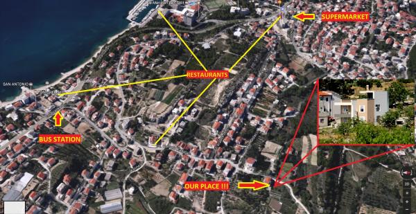 The apartments are located on the ground floor with the use of the garden. Parking space for cars. They are located 400 meters from the famous hotels and the beautiful beaches of Le Meridien Lav - Split. From the center of Split, you are only 8 kilometers. The airport is 25 km away.