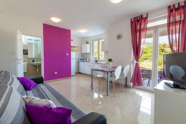 Fully furnished modern apartment near Split! Apartments are air conditioned, with private terrace and a barbecue in the garden. We also have a large trampoline for children (diameter 3, 5 meters). In a separate room there is a double bed, while in the living room can accommodate two adults on the comfortable sofa bed.