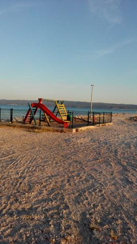 The apartment is located in a family house 40 meters from a beautiful pebble beach with a children's playground and a cocktail bar. It is a 15-minute drive from the center of Split.