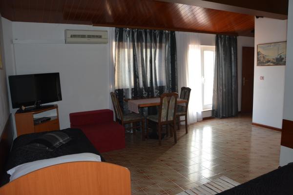 Fully furnished studio apartments and rooms Jure, are located next to the sea in Podstrana. The facility has two studio apartments for 3 +1 and one spacious room for 2 people. Large terraces and sea views from every unit. Shops and restaurants are just minutes walk away, and Le Meridine hotal with a casino, disco, gym and tennis courts is 5 minutes drive away. Split and Omis are within 15 minutes drive.