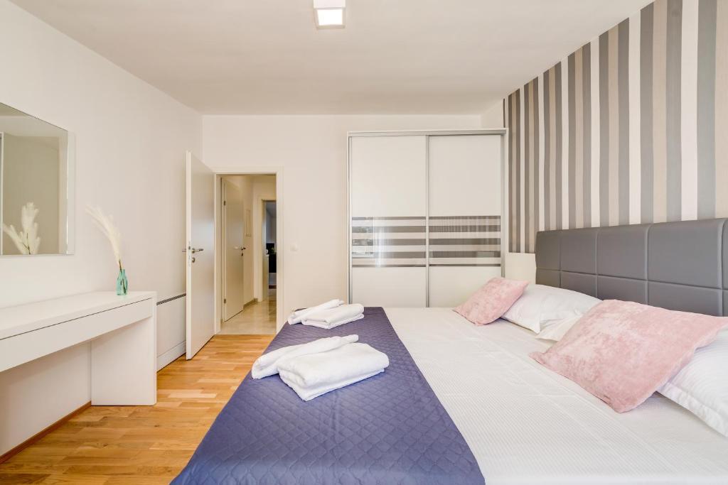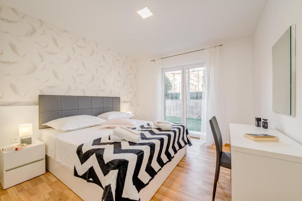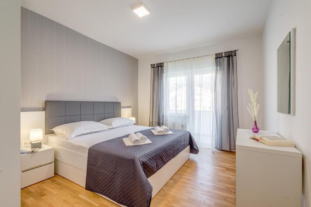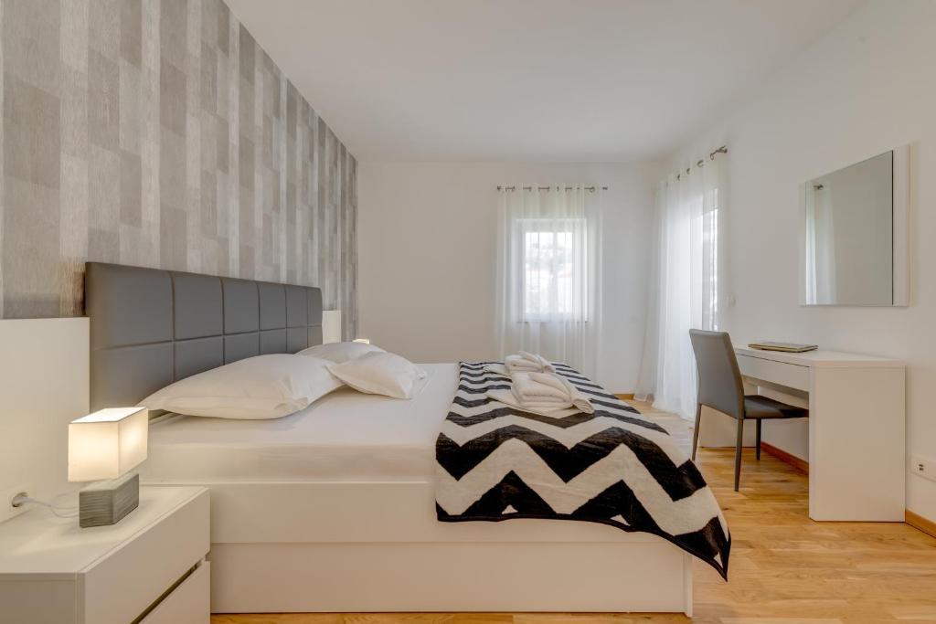 Modernly equipped apartments with a swimming pool, only a 10-minute walk to the beach. There is a shop, restaurant, coffee bar and pharmacy nearby. Stobreč is a 5-minute drive away, and Split is a 10-minute drive away.