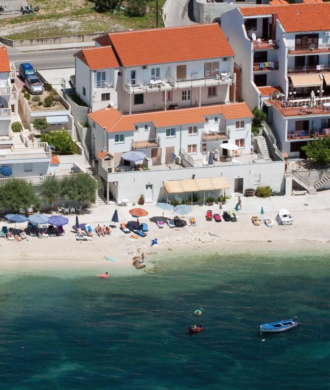 Fully equipped apartments in Podstrana, located first row to the sea. The apartments are located 50m away from shops and restaurants. Secured place on the beach with sunbeds and umbrellas included in the price.