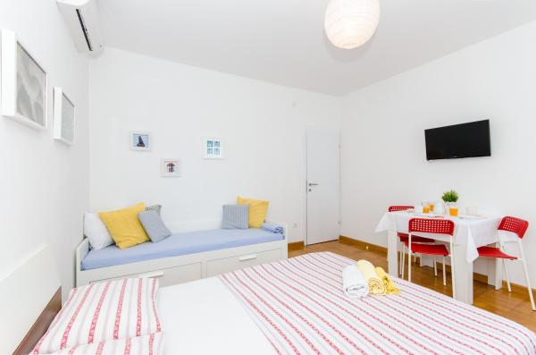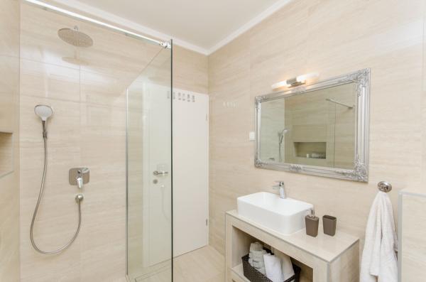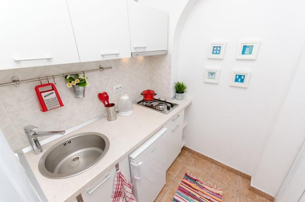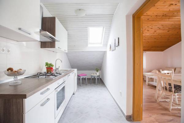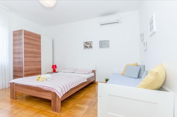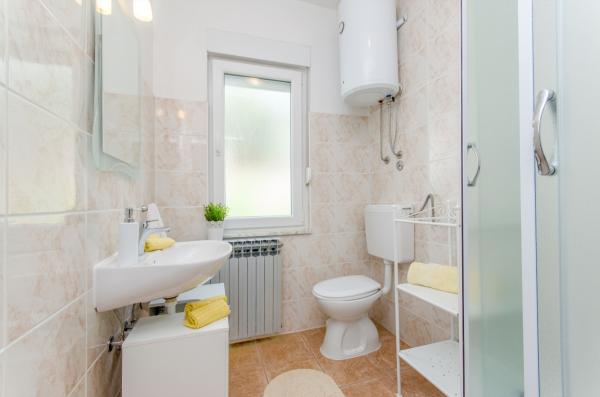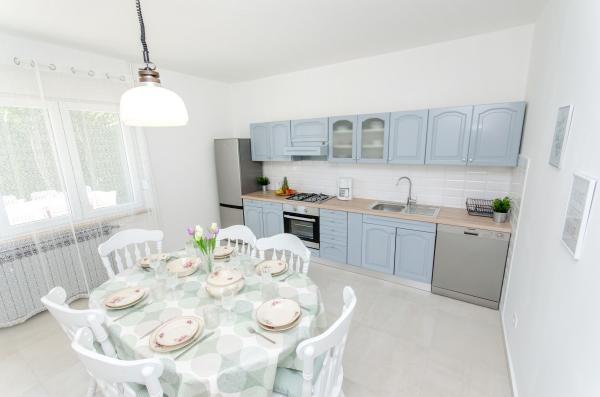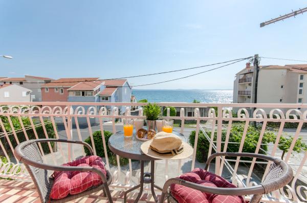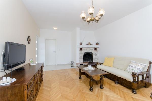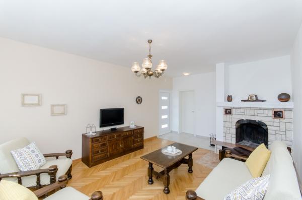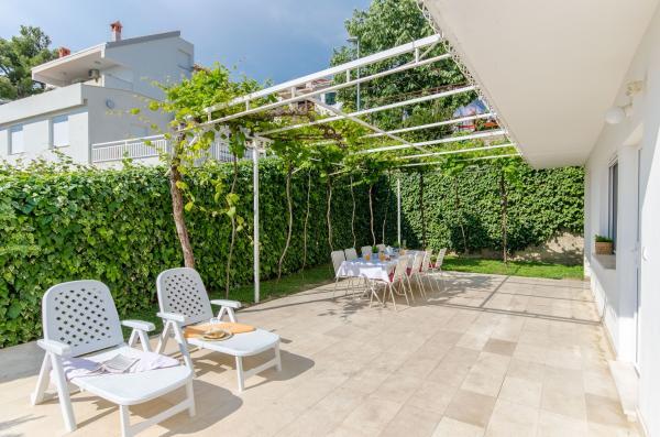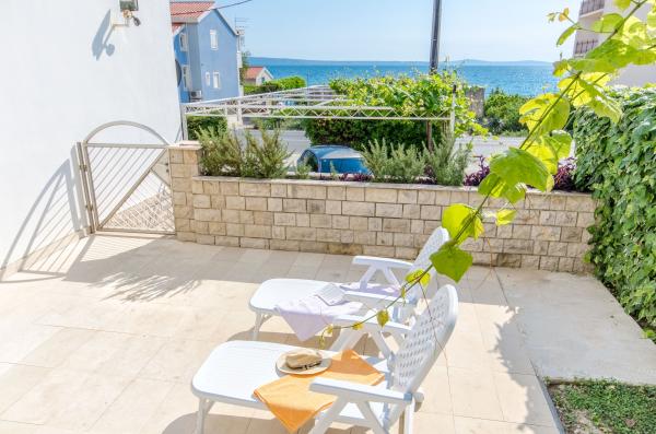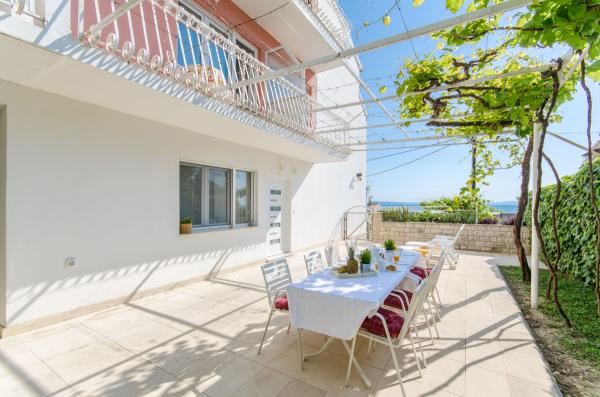 We were already with the family for the second time and I can recommend this property. It is clean, peaceful, close to the beach - although you have to cross the road - but it also has pluses (although it is also a small downside). The larger apartment has an exit to the large terrace where we spent the whole evening. Space for cars is covered (grapes grow on built constructions - a nice and interesting solution). There are not many people on the beach and most of them are families with children and you could always have a piece of the beach for yourself without any trouble. The water is clean, warm and full of fish, crabs and is above all clean (but you still have to watch out for echidnas - but it's such a charm). The children were very delighted. The owners are nice and helpful, they help you in case of trouble. Due to the large family and friends (also with children and also the second time they were) we prepare meals on our own. There was no trouble because the kitchen is fully equipped and the stores are very close (one about 300 m, the other about 700 m) and prices similar to ours. If someone is looking for entertainment, you can always drive to Split - only about 10 km and the city is fantastic, especially at night. I think we will be back there again. Regards Cezary