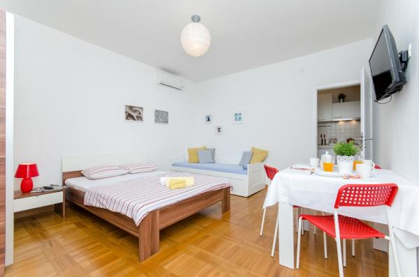 All information is consistent with the description, and even on the spot it turns out that it is better. Apartments clean and tidy. Located in a secluded area a minute from the sea with a pebble beach. A few kilometers from Split. I highly recommend, you will not be disappointed, we have been there for the fourth time.