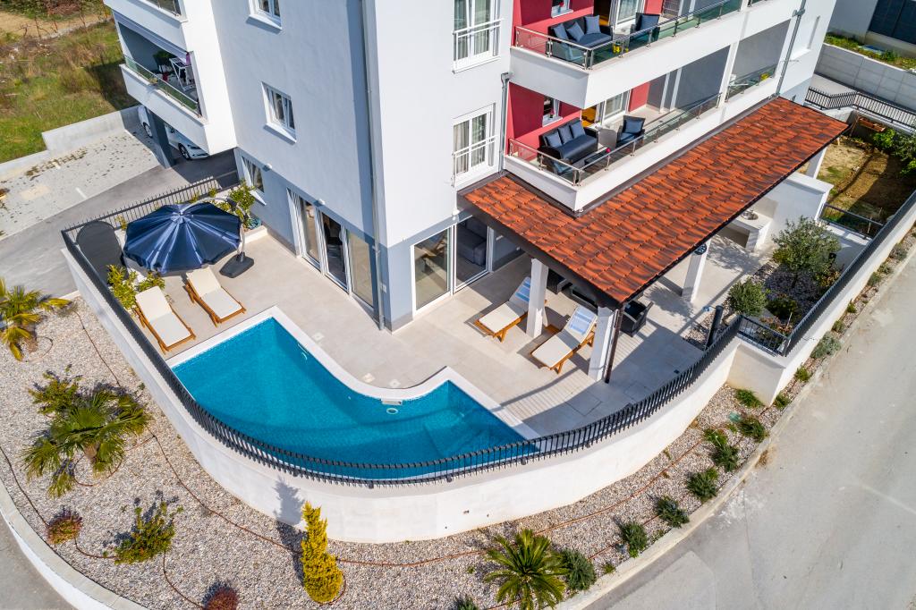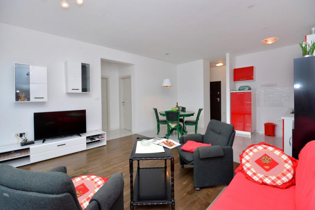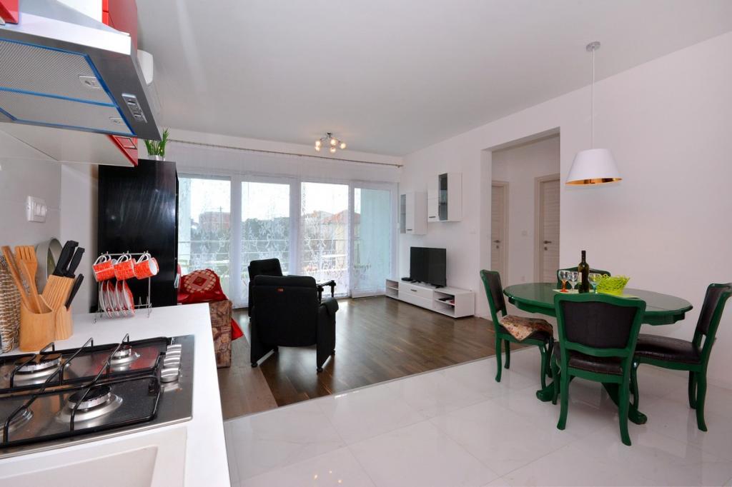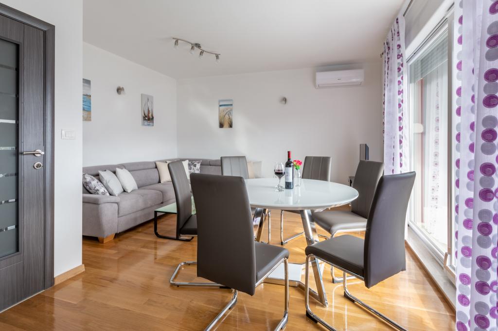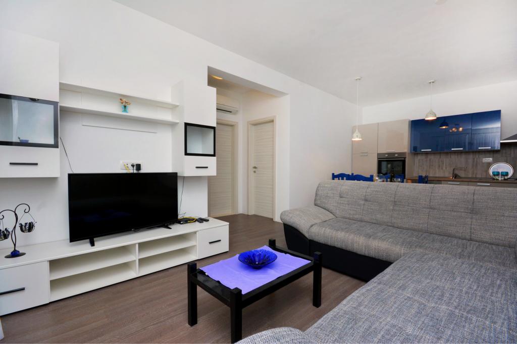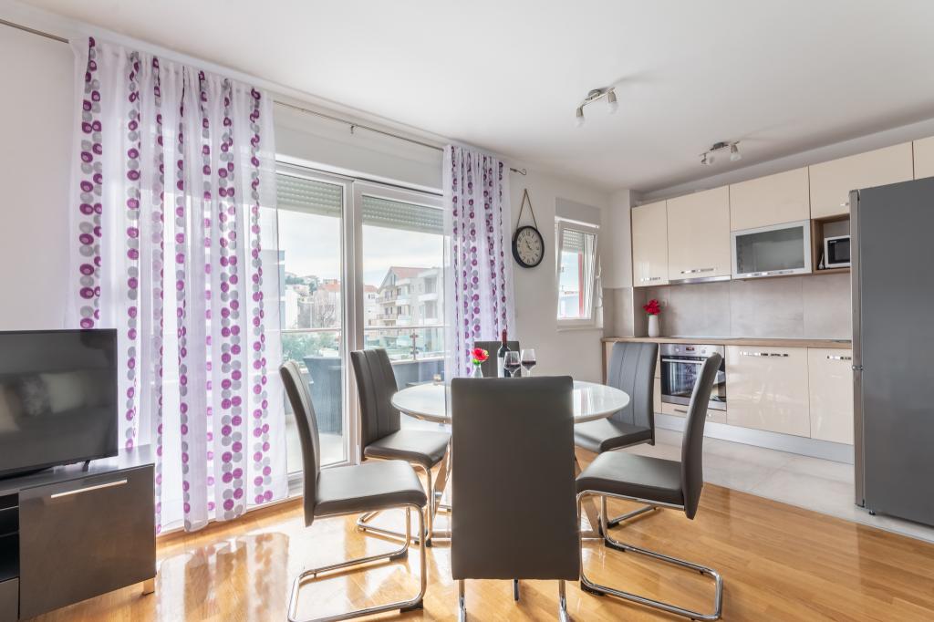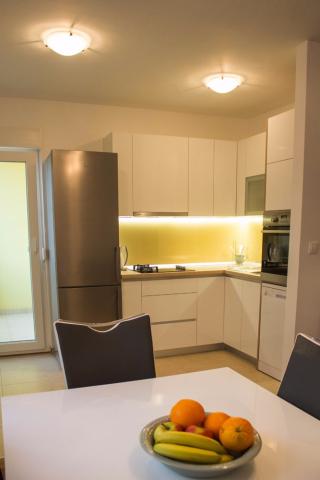 Fully modern luxuriously furnished apartment in a quiet part of Podstrana, beautiful apartment is located in new building with 2 bedrooms, living room, kitchen, terrace, tv-wi-fi, washing machine, air conditioning, close to the beach only 70 mt, private parking. Nearby there is a bus station, a market, supermarkets, bars, restaurants, fast food and alike. Podstrana is located near the city of Split only 10 km.