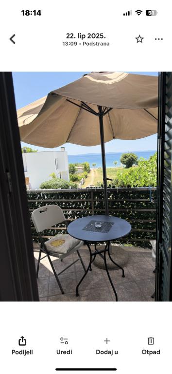 Apartments Sara are located on a very beautiful place. A piece of Split and Omis. The area is a restaurant, shop and post office. The apartment house is everything for a pleasant, relaxing and memorable vacation. Definitely highly we recommended! Thanks are owners of Ariel Zeljko! The apartments have either a balcony or terrace so you can have breakfast with a spectacular view of the sea! A few meters from the apartment beach with clear, blue water. The owners of Ariel and Željko is very kind and attentive people. Dovolenkovala I'm here with my parents and also continue to do so with my friend. Already in the apartment Sara very much looking forward this year :)