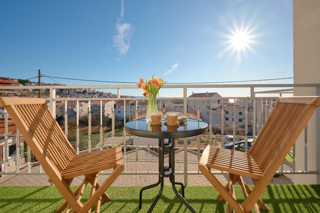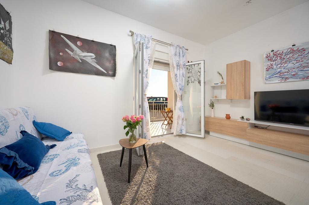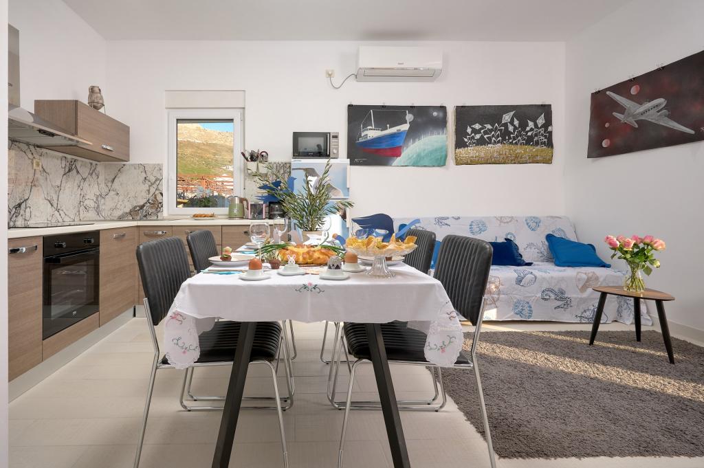 Three newly renovated apartments "Sita" are located in Podstrana, right next to the sea. This seaside oasis, which boasts pristine beaches and crystal clear sea, is the perfect destination for families and all those looking for a peaceful haven in a small town with the excitement and cultural richness of nearby Split. Each of our apartments exudes airiness and comfort, offering two bedrooms, a modern bathroom, a functional kitchen with an integrated living room, and a private balcony with a view of the sea. For your undisturbed vacation, each apartment is carefully designed and equipped with modern facilities: air conditioning, WiFi, TV. Car parking is within the property, while the proximity of restaurants, shops, pebble beaches and sports fields offers countless opportunities for exploration and activities.